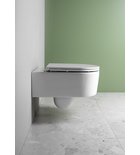 The shape of the bowl allows for efficient and effective flushing with less water, thus saving the environment and water costs. Flush saving can be used with a flushing mechanism (in the cistern of a close coupled toilet or the concealed cistern of a wall-hung toilet) whose drain valve allows water volume adjustment from 4 litres. In the case of dual flush, the small button has a volume of 3 litres and the larger button a volume of 4.5 litres.