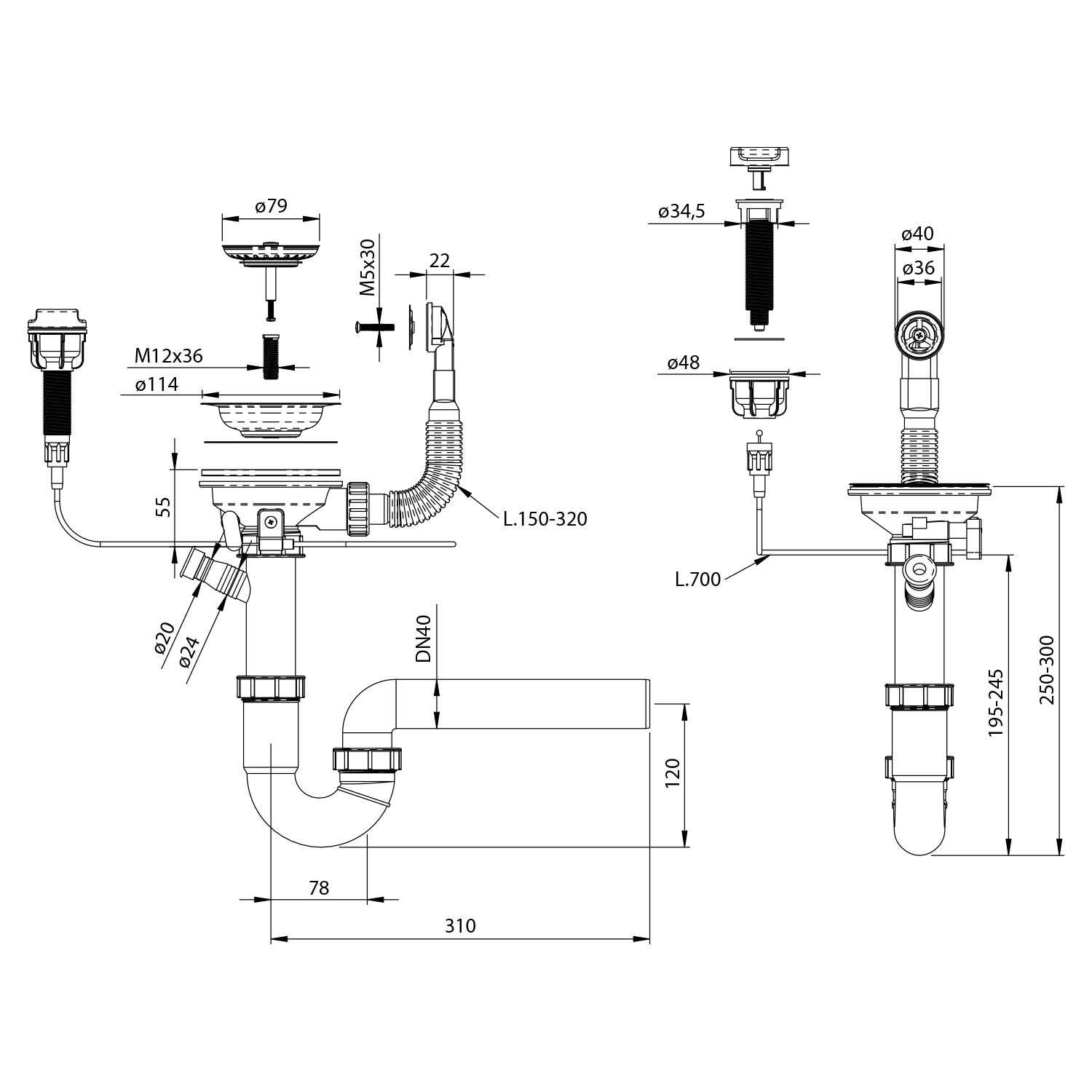 BRUCKNER szifonkészlet túlfolyóval és bovdenes kiemelővel, 1 medencés, 6/4", DN40 (155.128.0)
