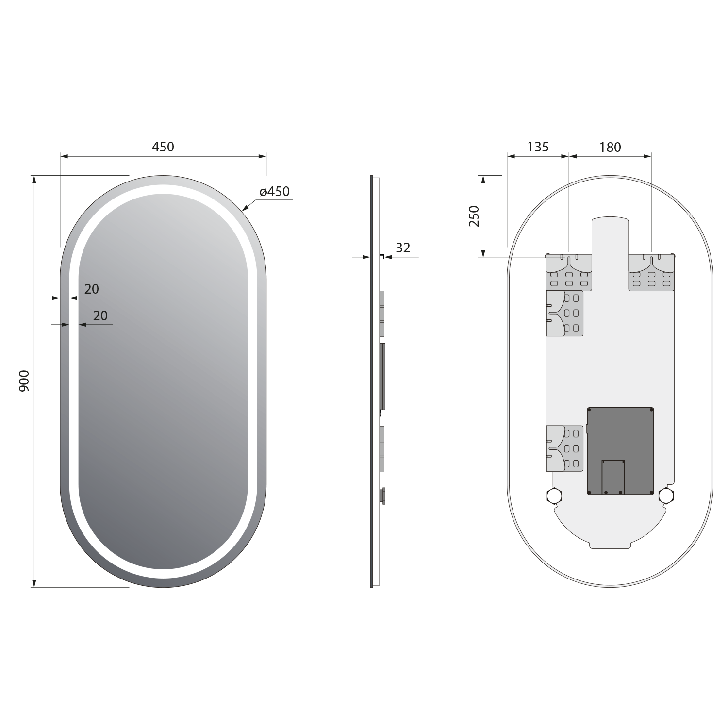NY800 NYX tükör LED világítással, átm.:80cm