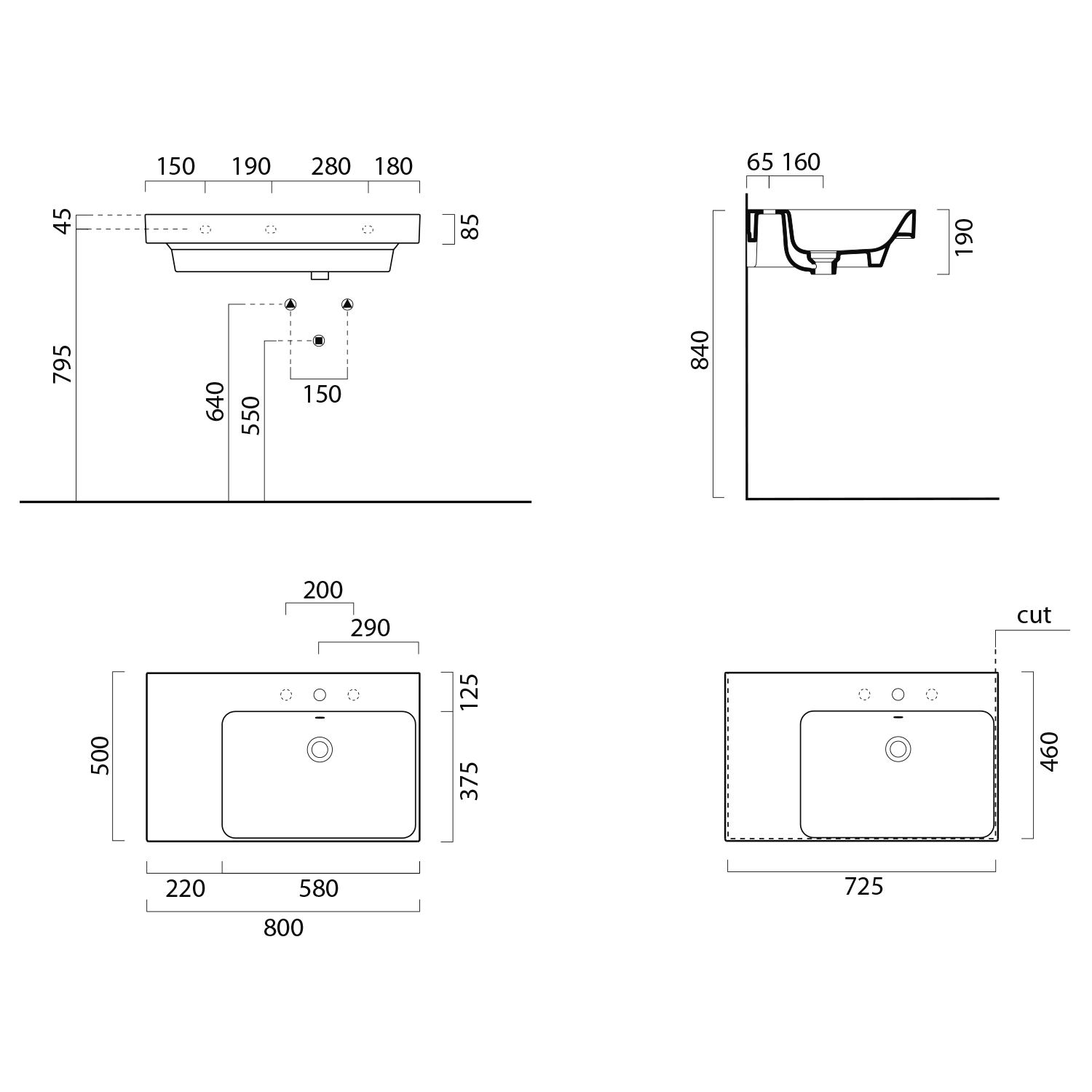 96379026 GSI NUBES kerámiamosdó, 50x25cm, retifikált, furat nélkül, jobbos/balos, matt fekete