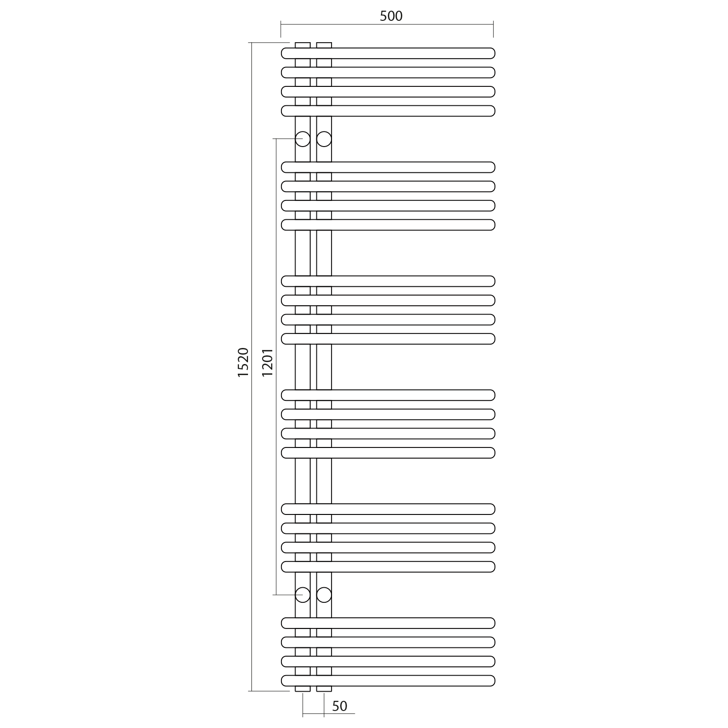 Towel rail with a 50 mm connection spacing