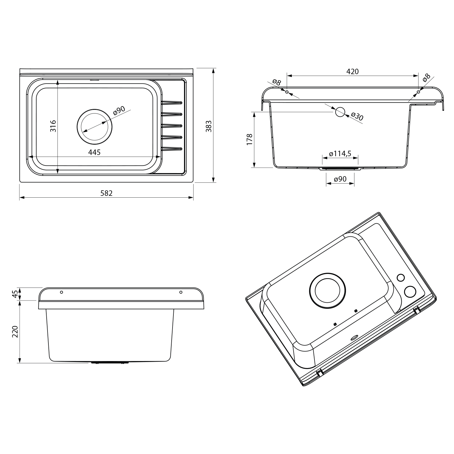 AQUALINE Fali kiöntő, szifonnal, 58x38cm (PI5838)
