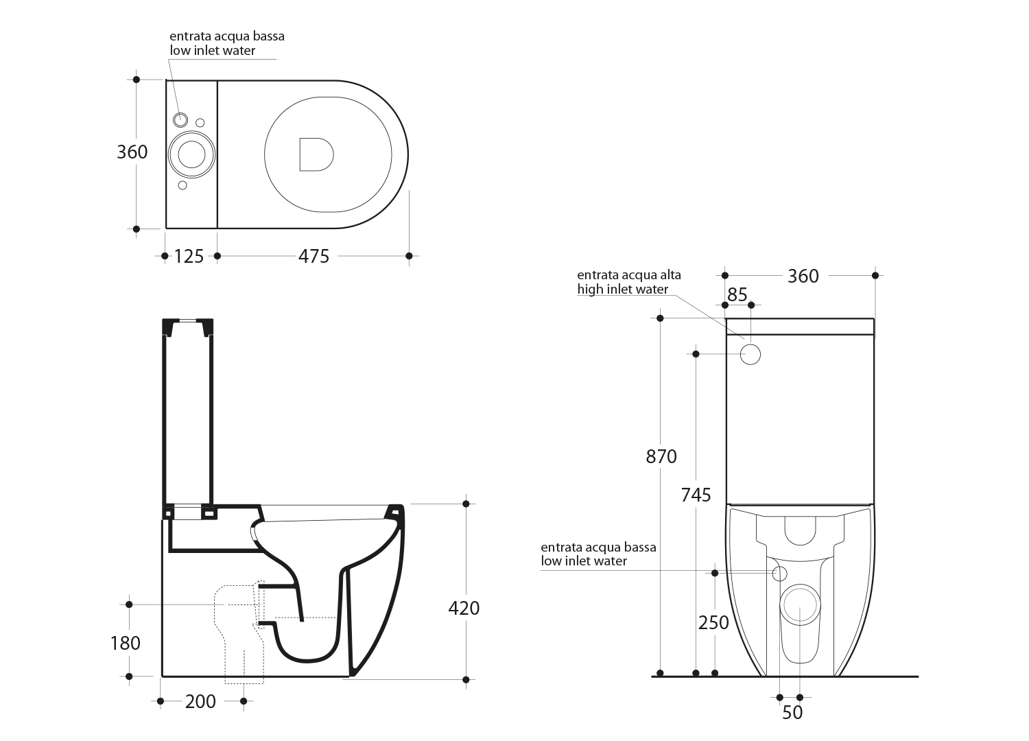 WCSET11-FLO KERASAN FLO kombi WC, tartállyal, mechanikával, alsó/hátsó kifolyású, ülőke nélkül