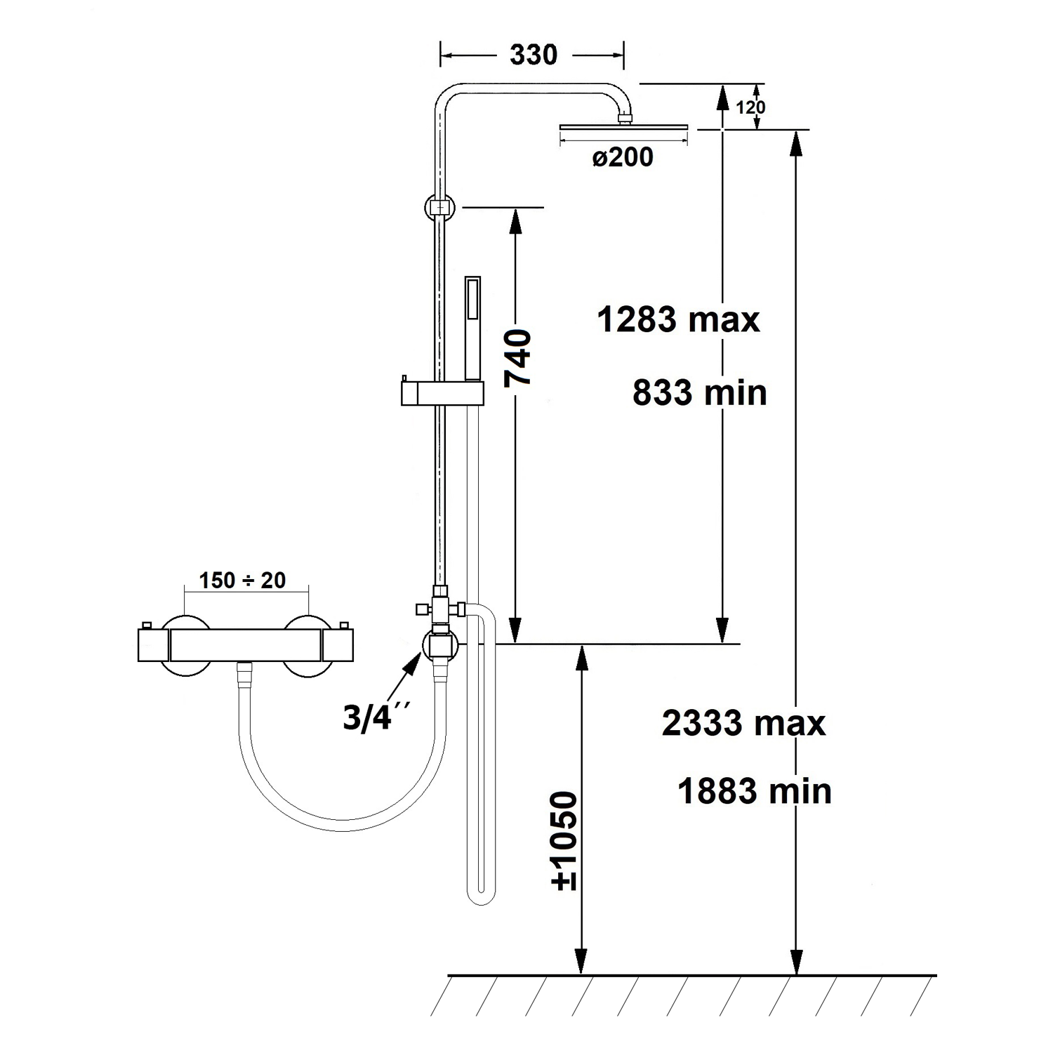 REITANO AIRTECH zuhanyoszlop csaptelep nélkül, zuhanyszettel, króm (990E)