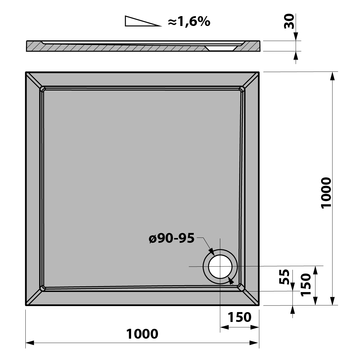 51111 POLYSAN KARIA öntöttmárvány zuhanytálca, 100x90x3cm