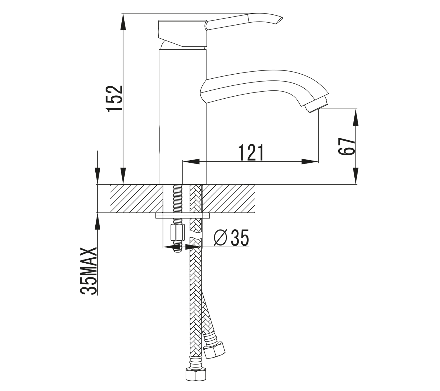 Kifolyócső magassága67 mm