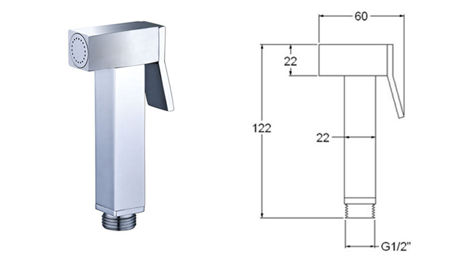 szögletes bidé zuhanyfej, króm (BS129)