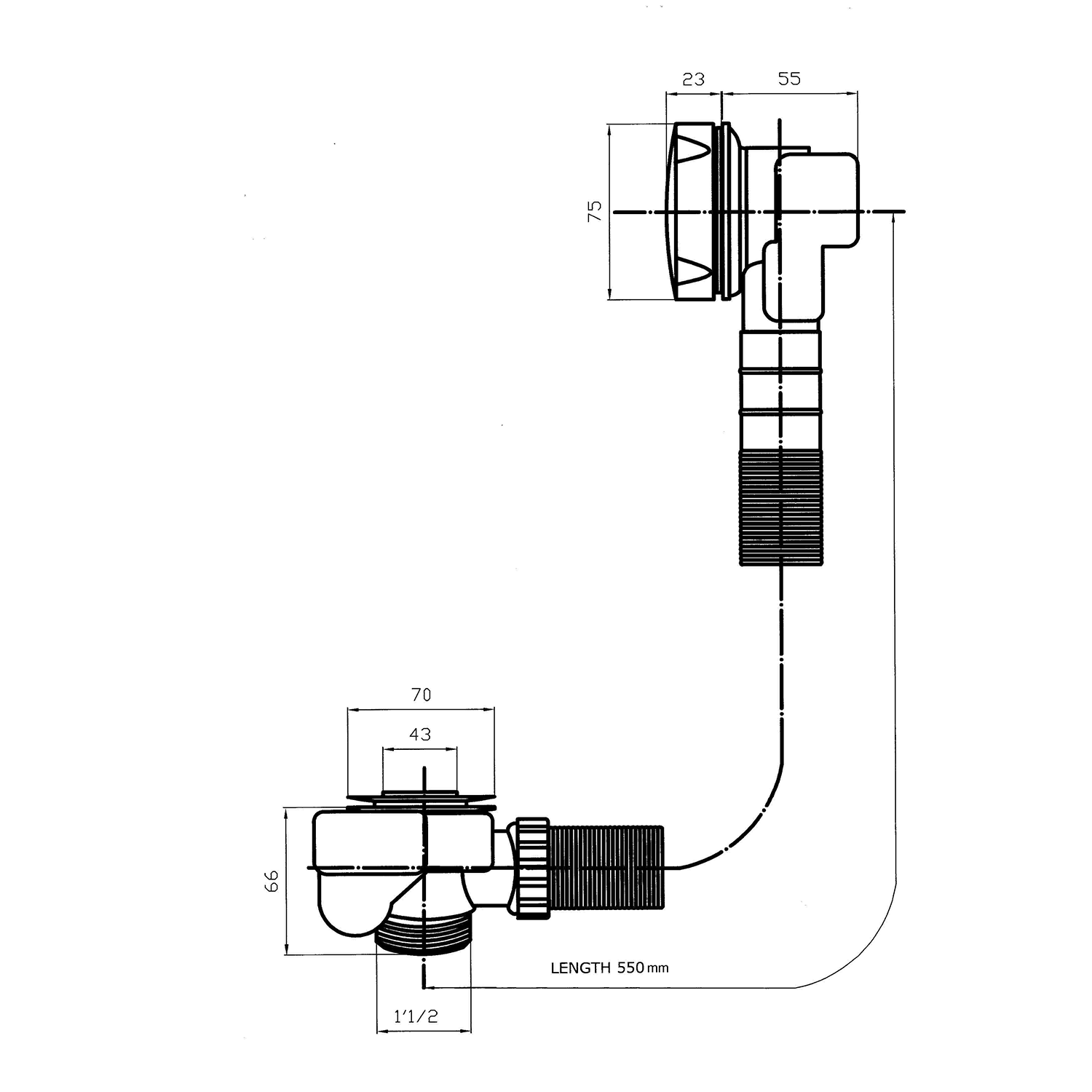 SENATOR kád le- túlfolyó 550 mm hosszú csiszolt inox dugó 72mm (VR115528)