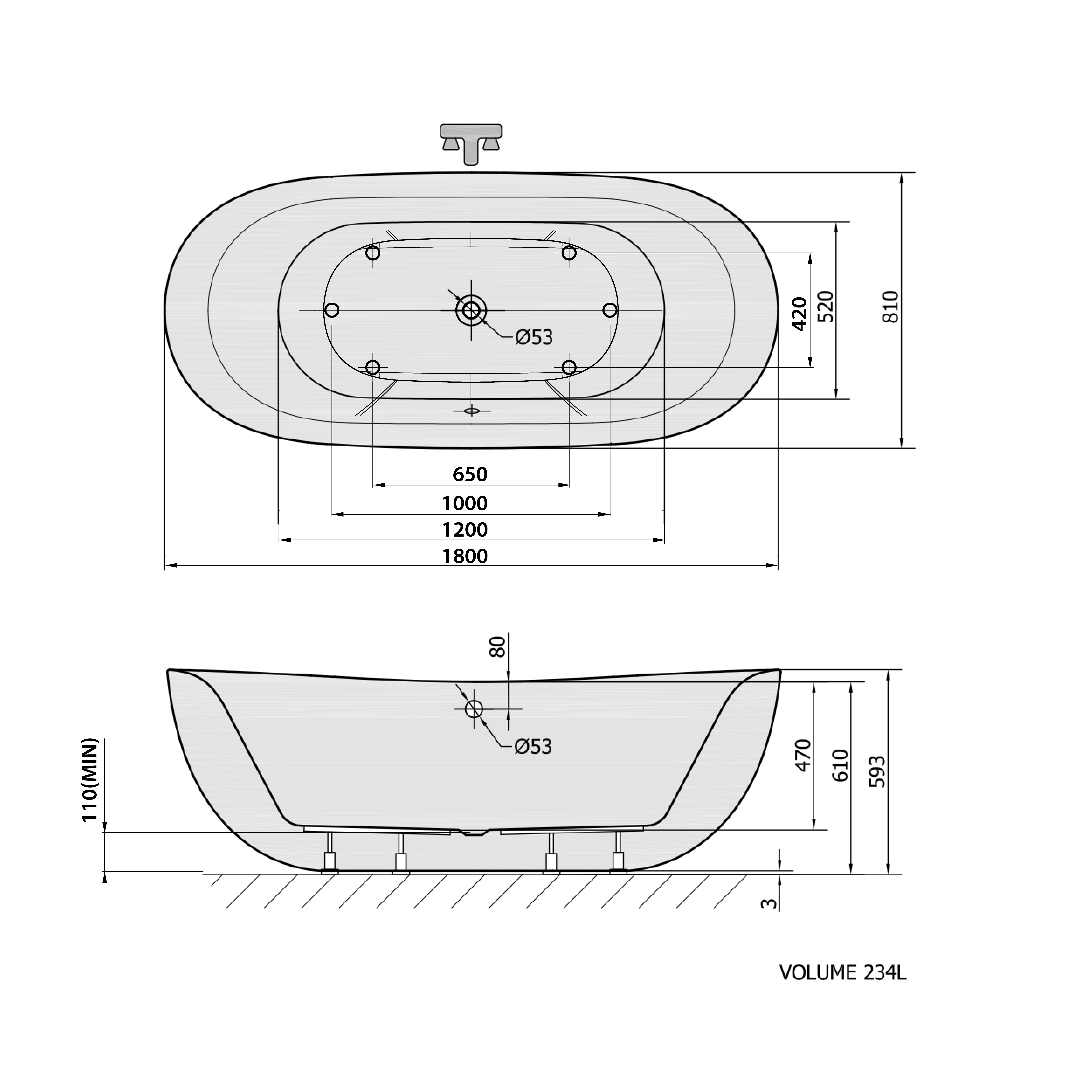 POLYSAN ZASU szabadonálló kád, 180x81x58cm (69611)