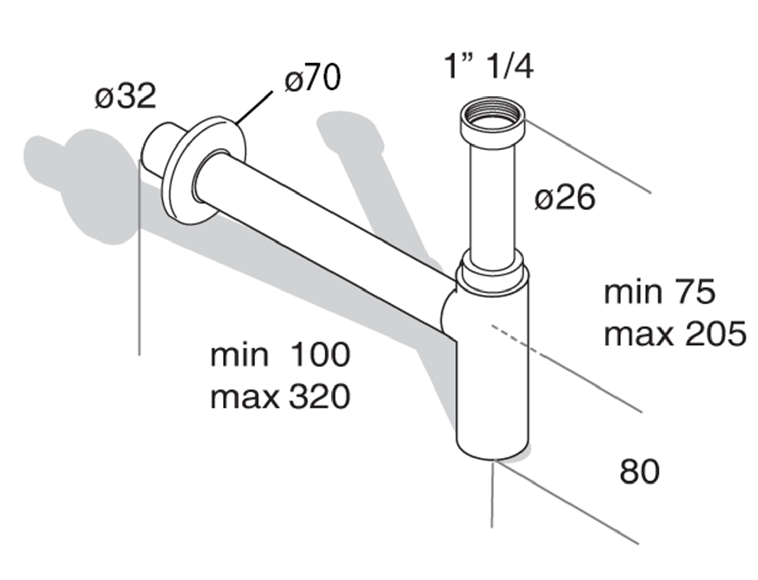 OMP TEA MINITOTI mosdó szifon 1'1/4-32, kerek, réz/króm (510.135.5.K)