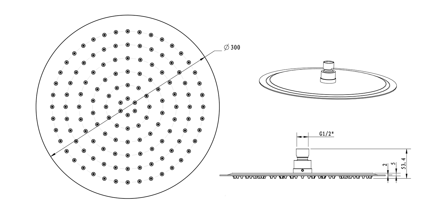 SLIM fejzuhany, kör, 300mm, inox (MS573)