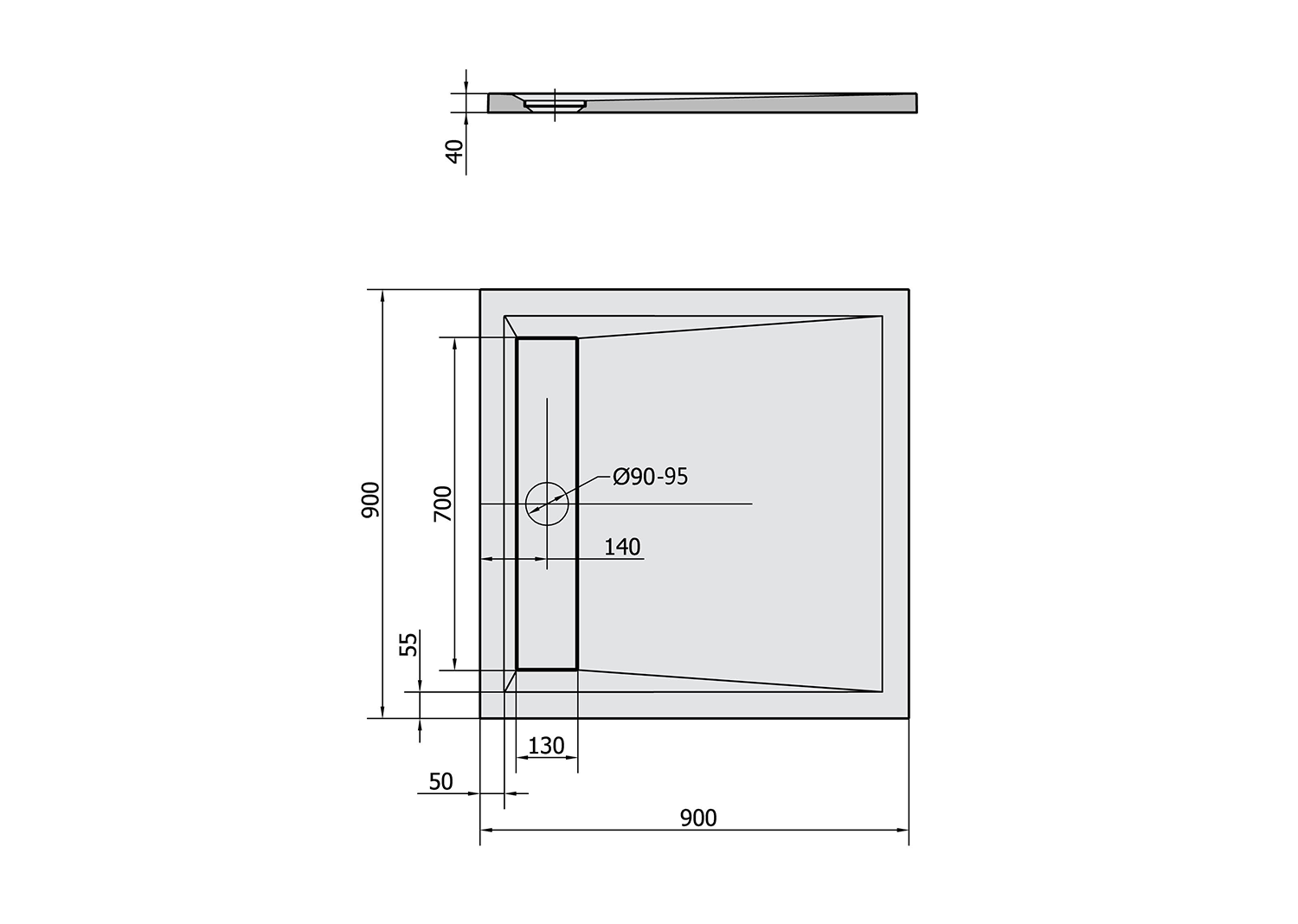 71606 POLYSAN VARESA öntöttmárvány zuhanytálca, 90x80x4cm