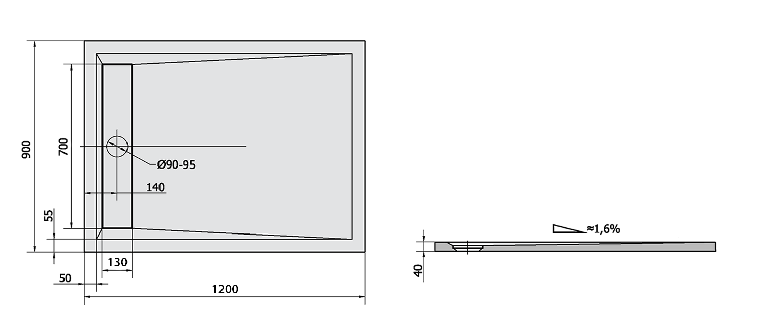 71603 POLYSAN VARESA öntöttmárvány zuhanytálca, 120x90x4cm
