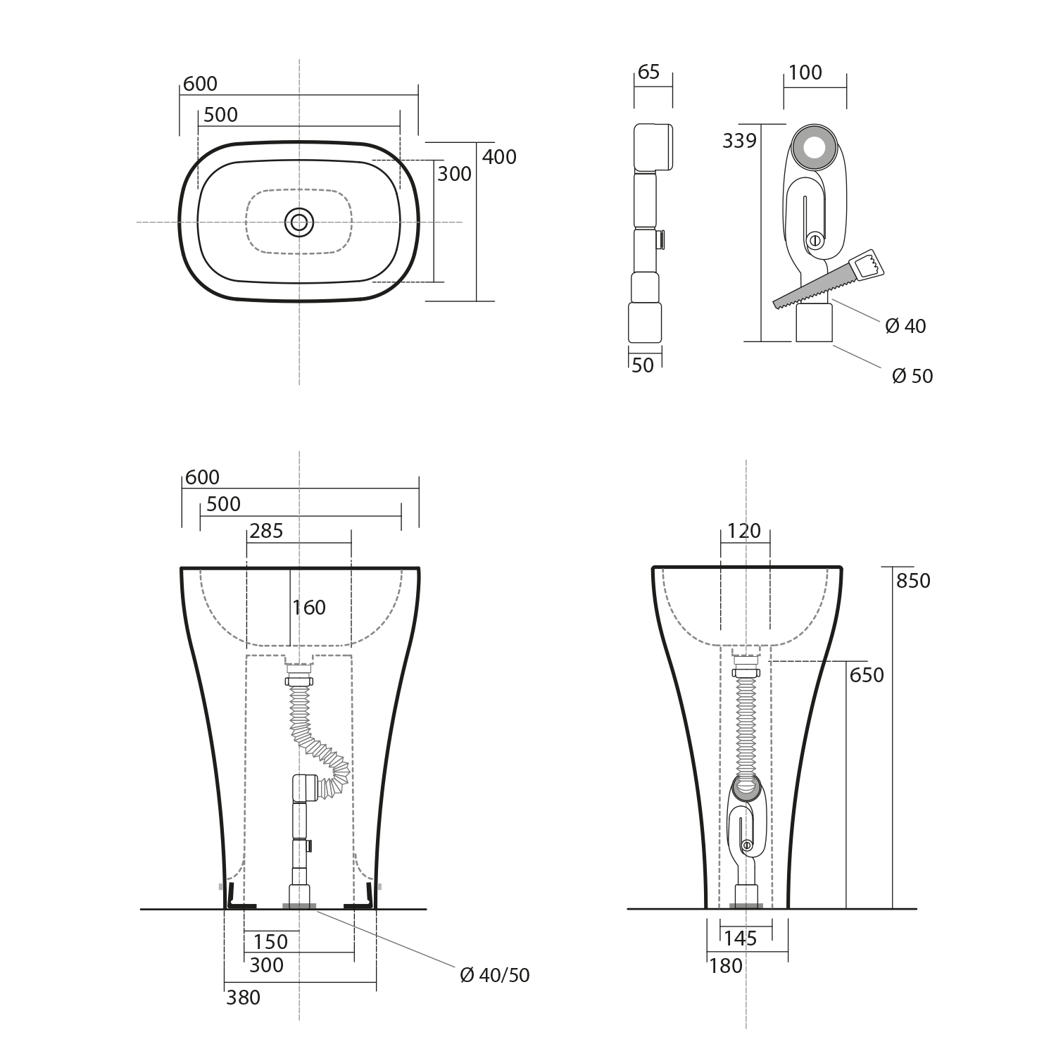KERASAN AQUATECH szabadonálló kerámiamosdó, 60x85x40cm (374201)