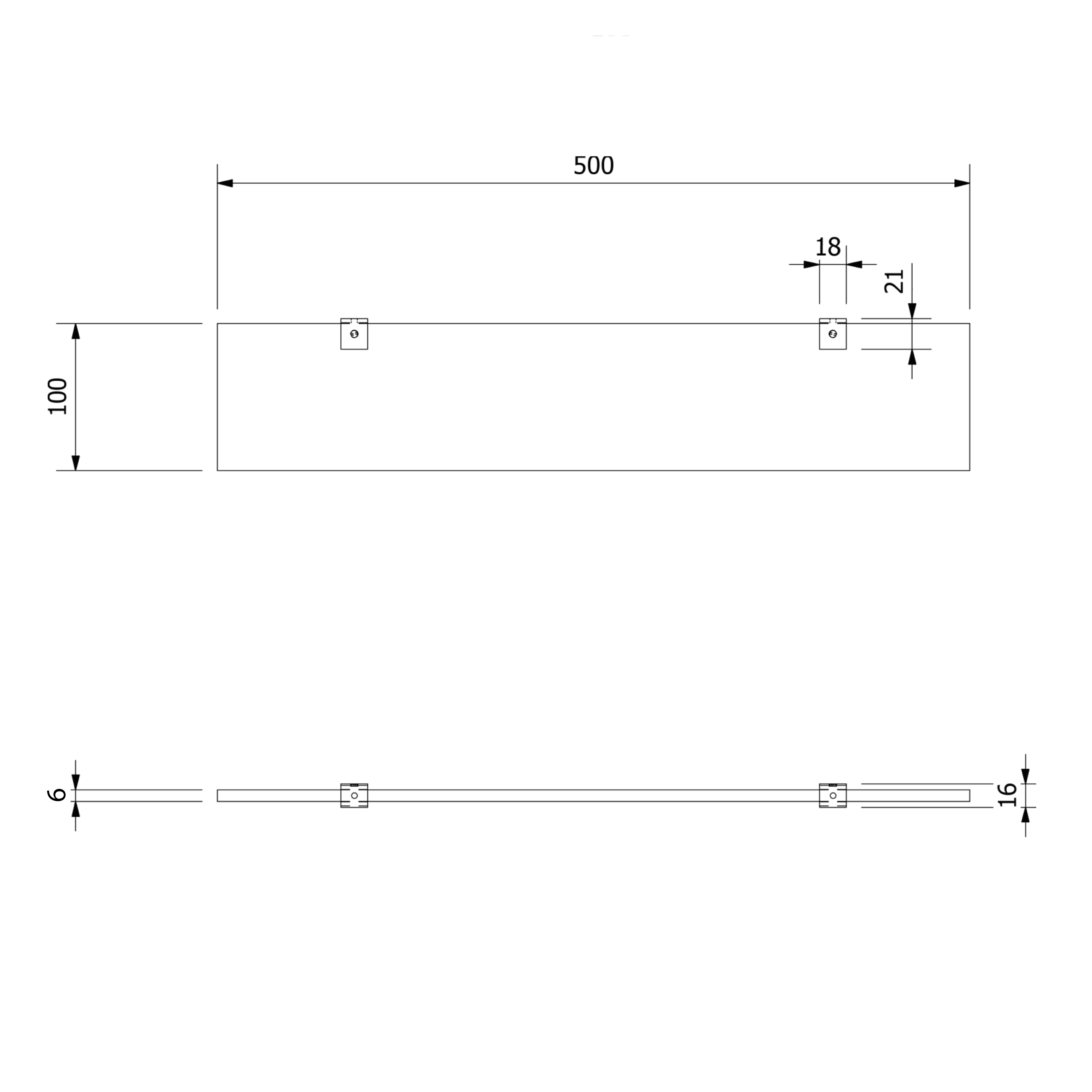 SB115 AQUALINE SAMBA üvegpolc, 50x10cm, átlátszó üveg