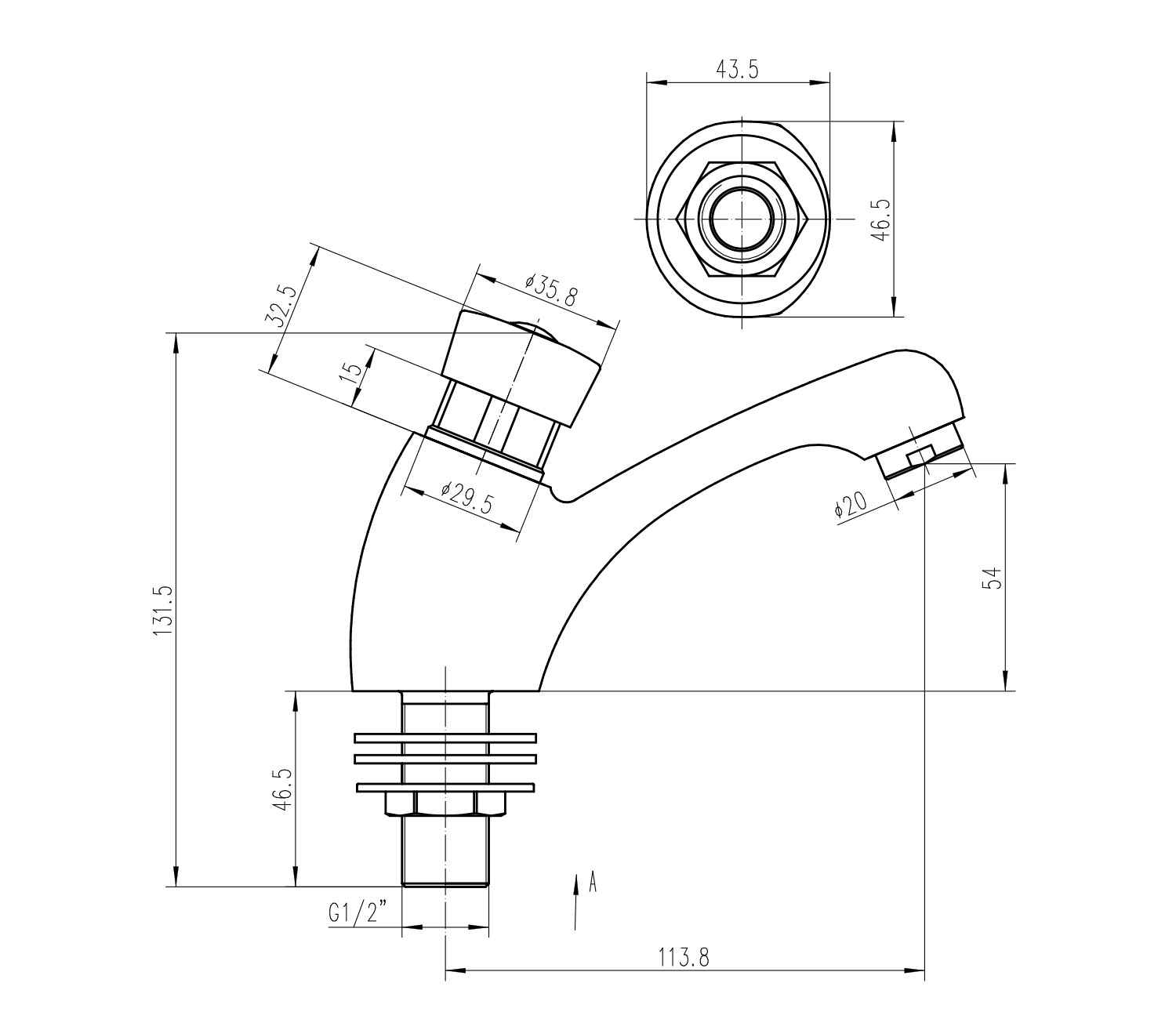 Kifolyócső magassága54 mm