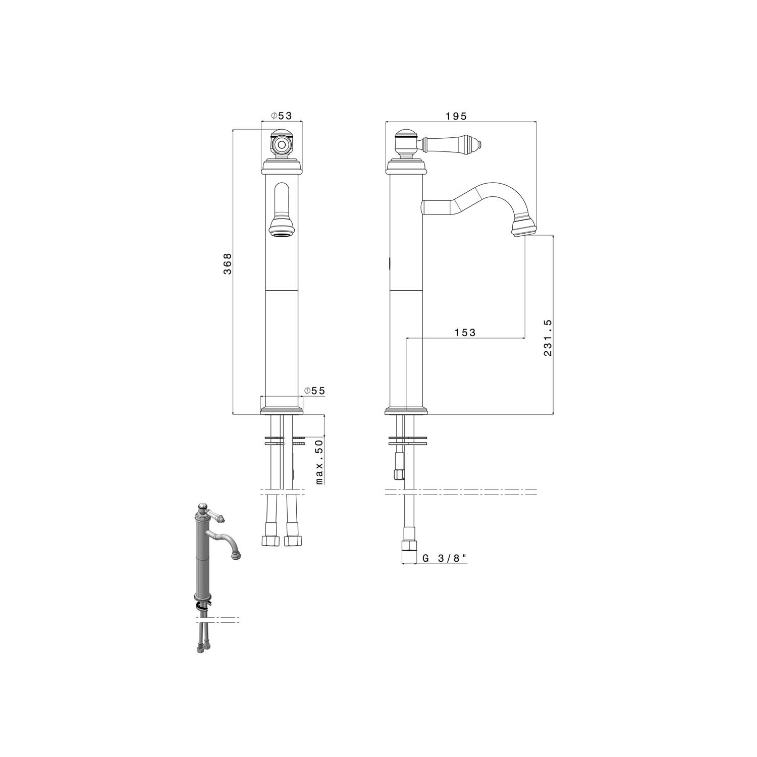 Kifolyócső magassága231.5 mm