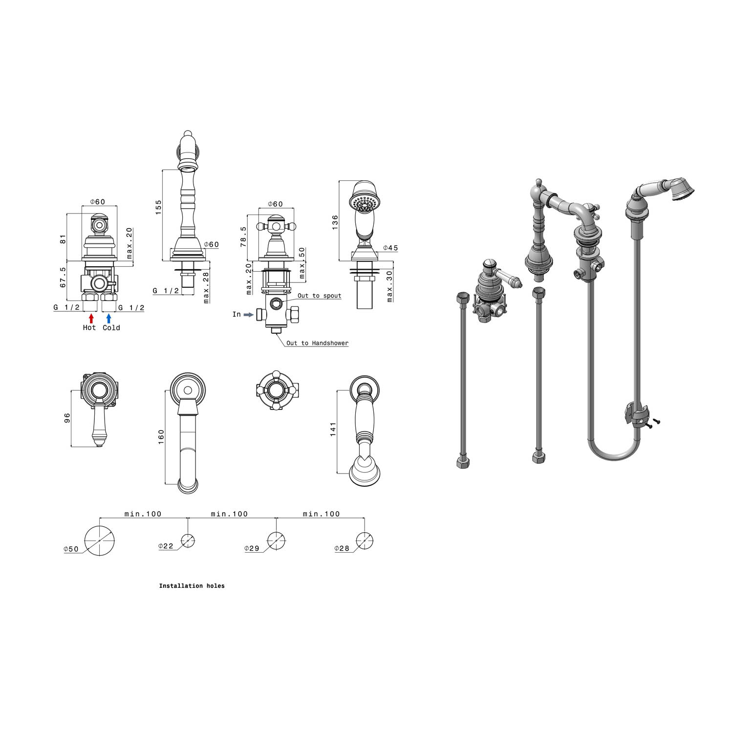 VO930 VIENNA 4 részes kádperemre szerelhető kádtöltő csaptelep, króm