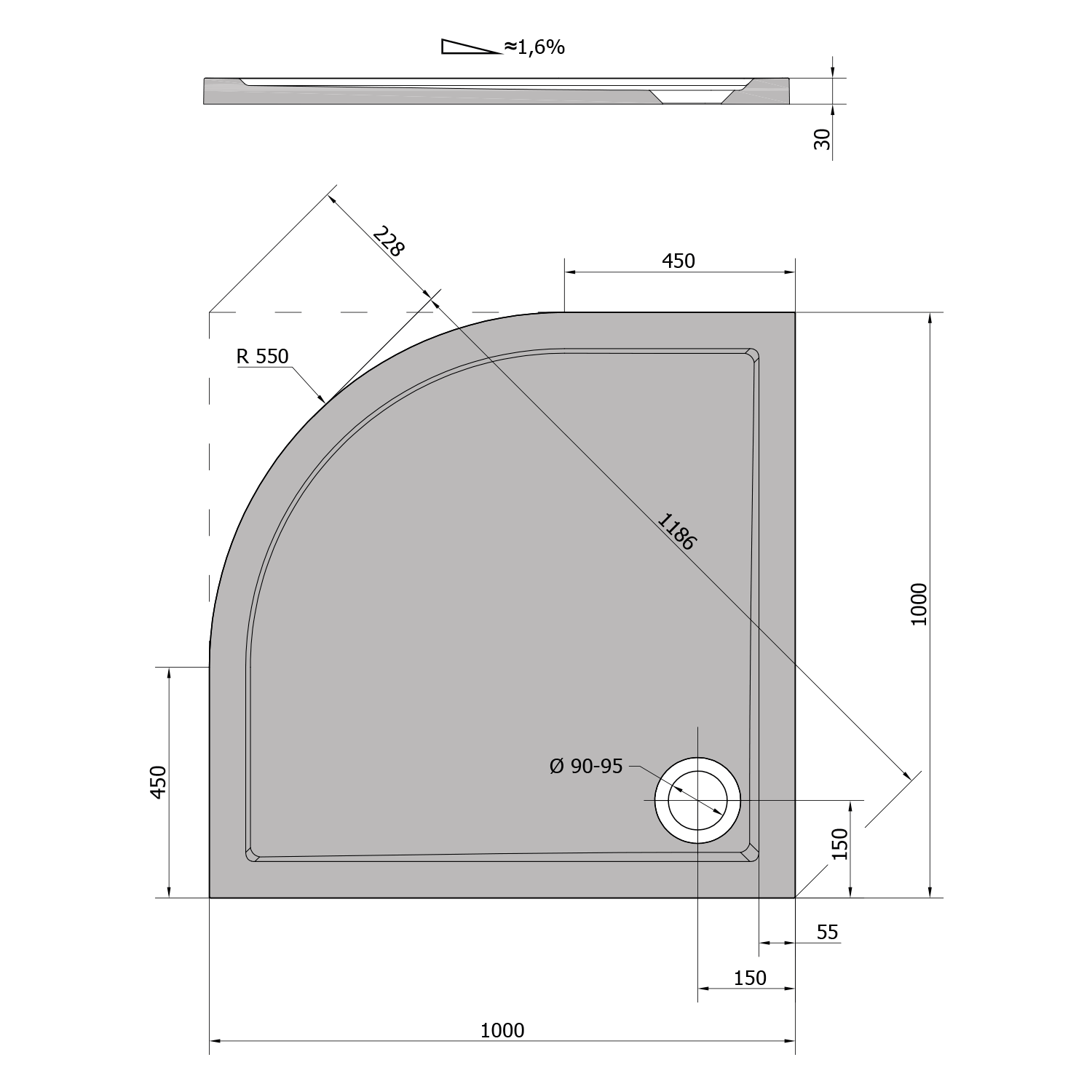 PA551 GELCO ARCA íves zuhanytálca, R550, 100x100cm