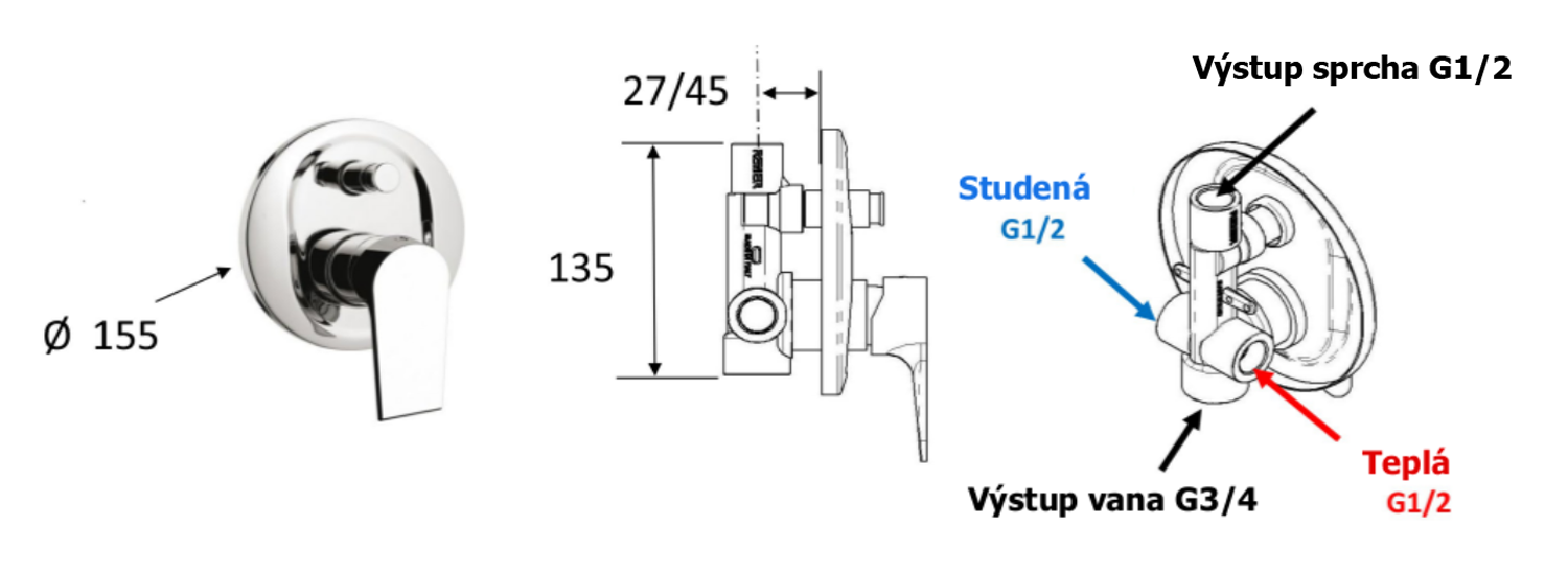 KA42-03 KAI falba süllyesztett zuhanycsaptelep, 2-irányú váltóval, zuhanyszettel, fejzuhannyal, króm