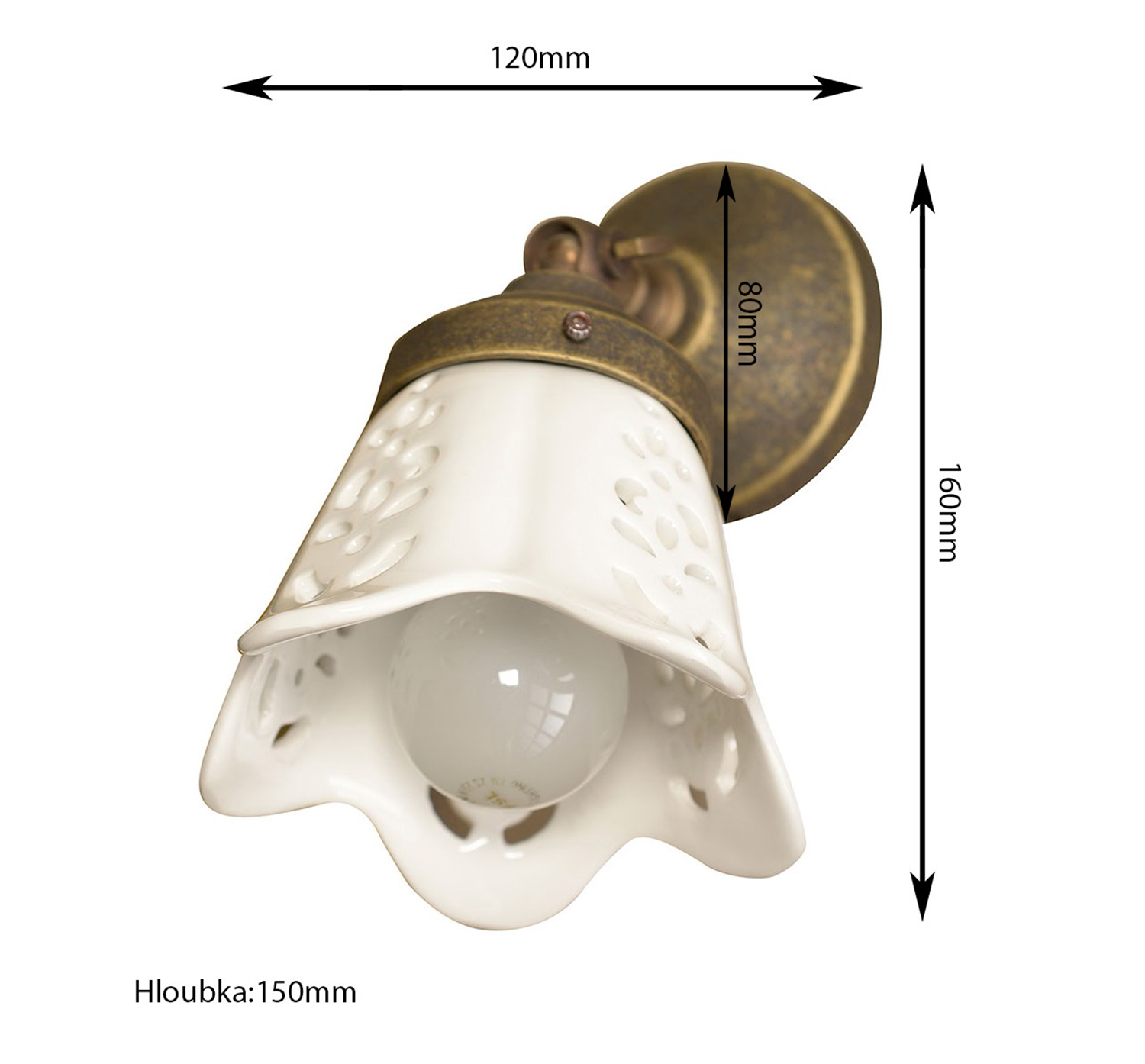 MC811 BARI fali lámpa, kerámia búra, max:40W, 230V, 138x180x210mm, bronz