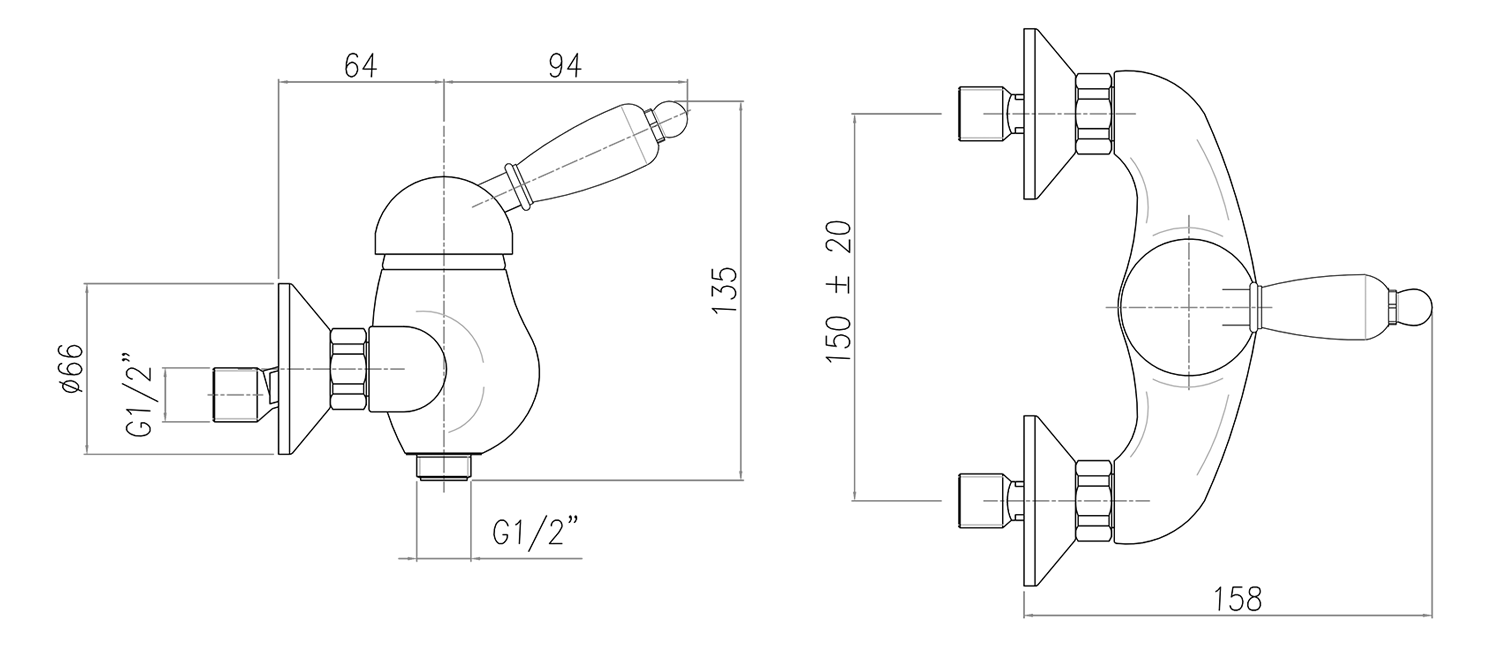 KI15BC KIRKÉ fali csaptelep, fehér kerámia karral, króm