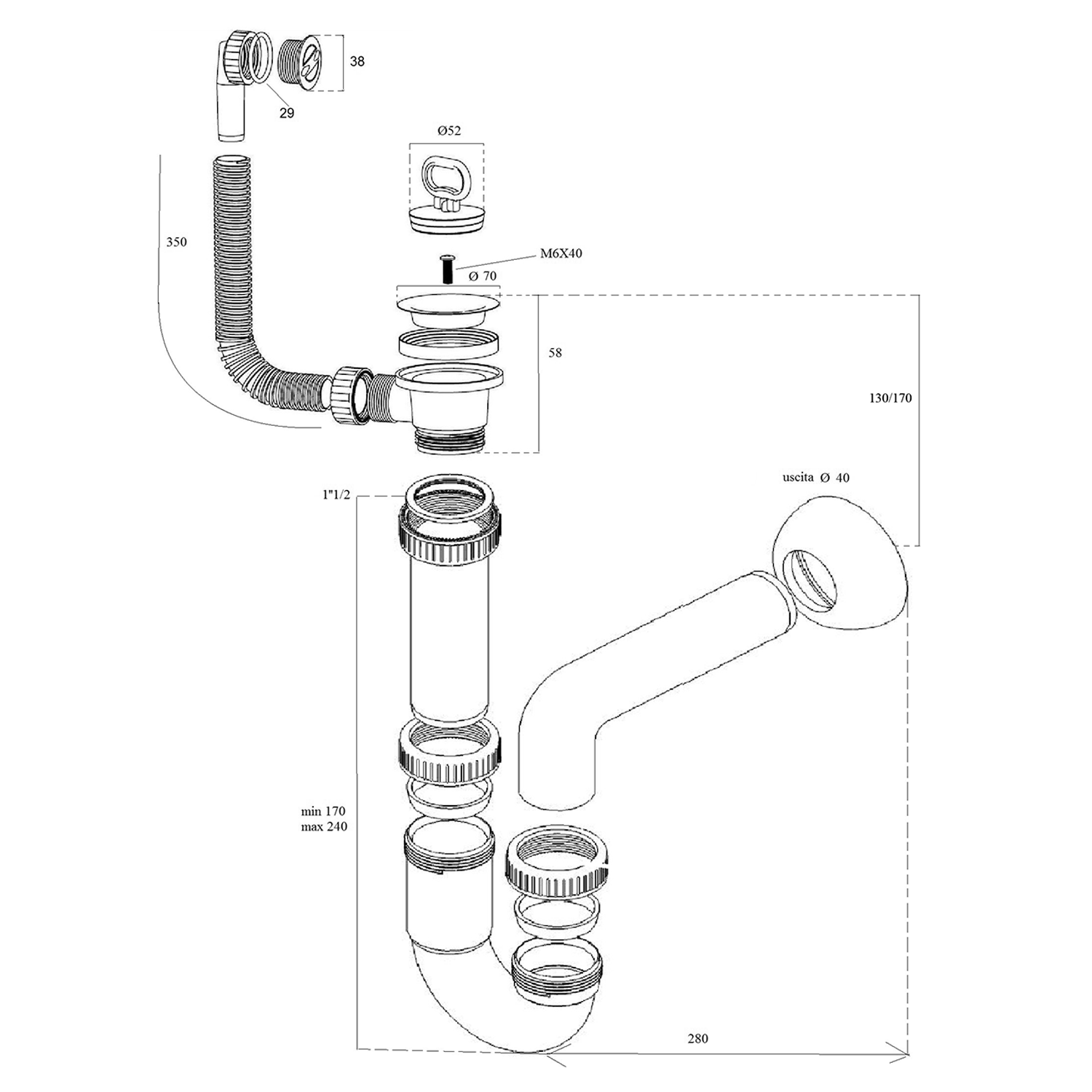 Csomag tartalmaLefolyó;Szifon;Túlfolyó készlet;
