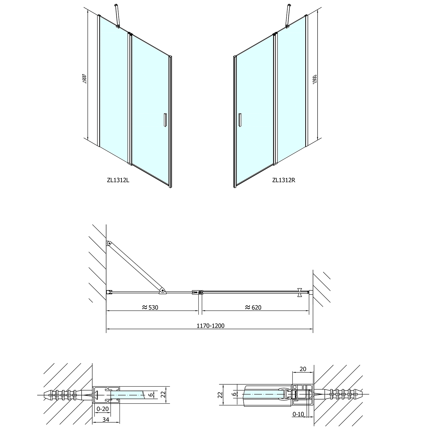 ZL1210ZL3210 POLYSAN ZOOM LINE zuhanyajtó és oldalfal, jobbos/balos, 1000x1000mm, transzparent, króm