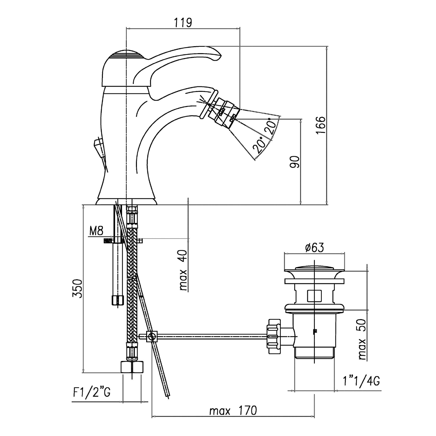 KI03C KIRKÉ bidécsaptelep, automata leeresztővel, króm