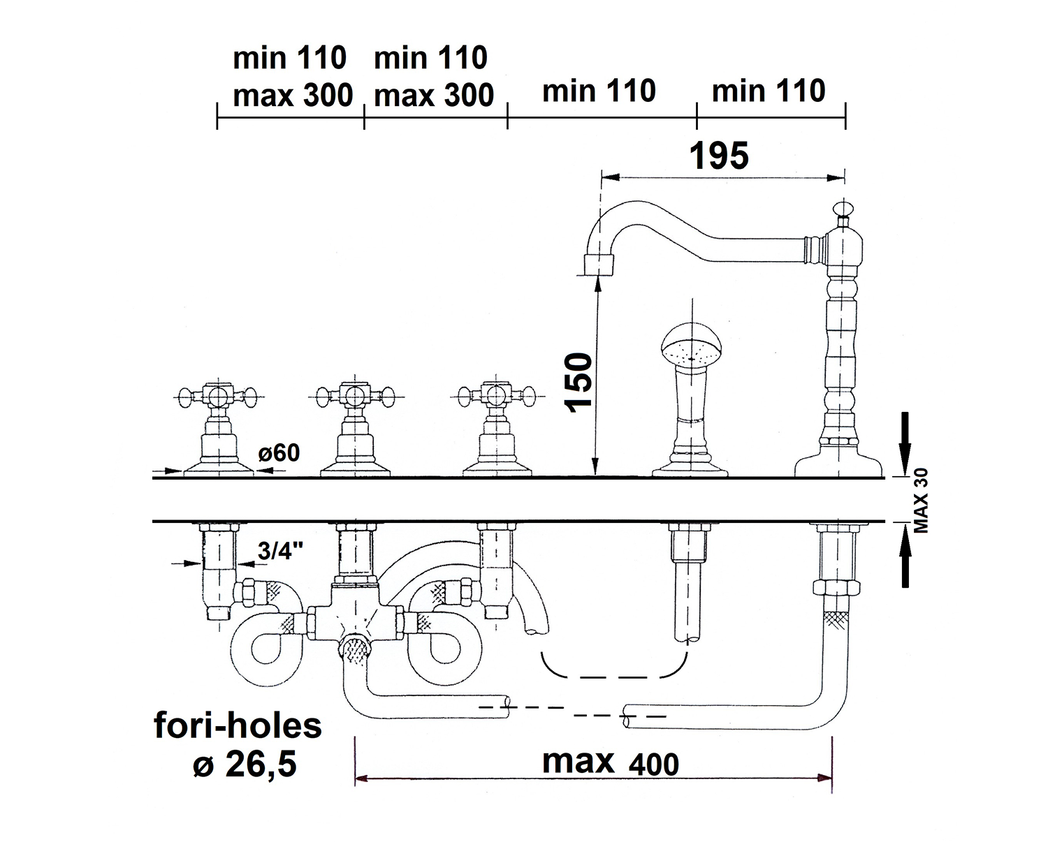 9856 REITANO ANTEA Kádperemre szerelhető csapteleptartó láb (pár), 3/4", bronz