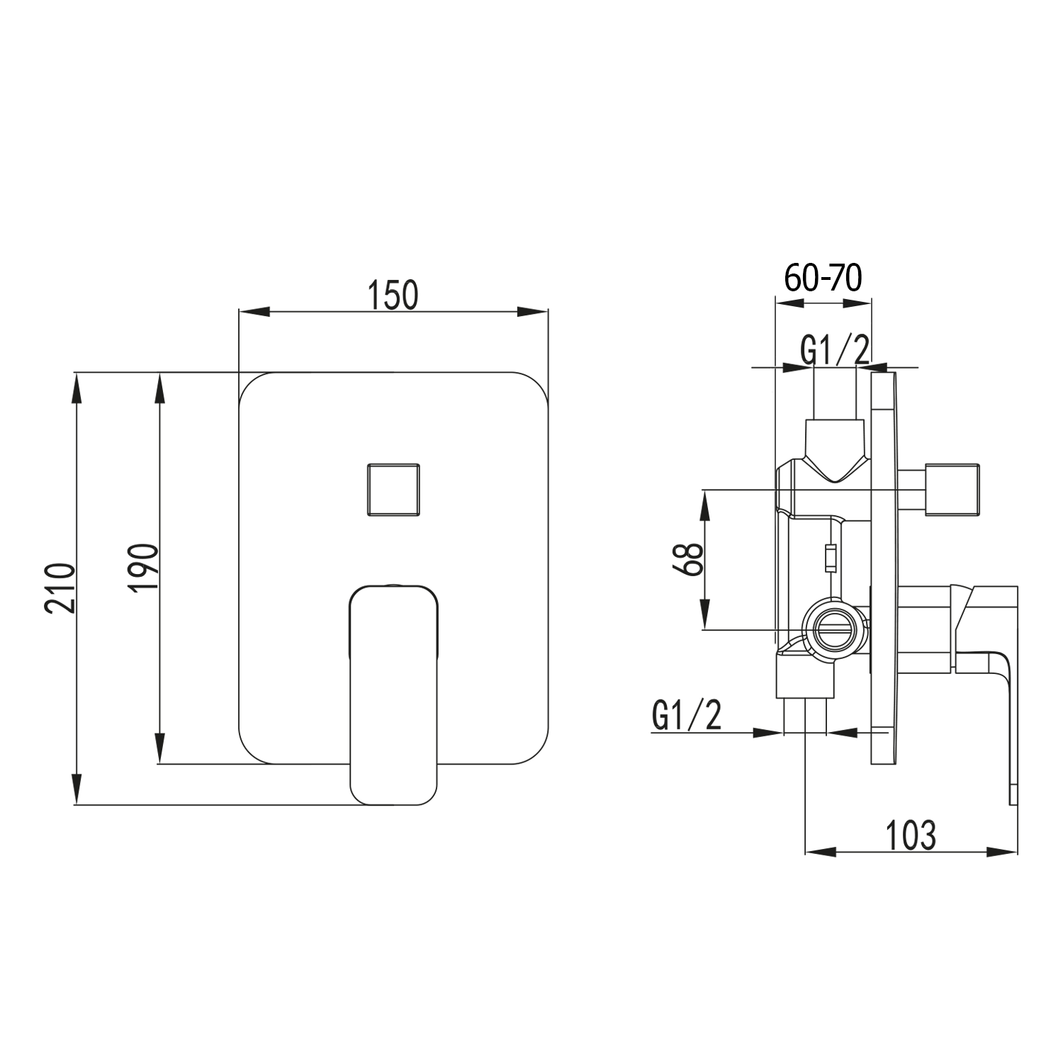 FC642 AQUALINE FACTOR falsík alatti zuhanycsaptelep, 2-irányú váltóval, króm