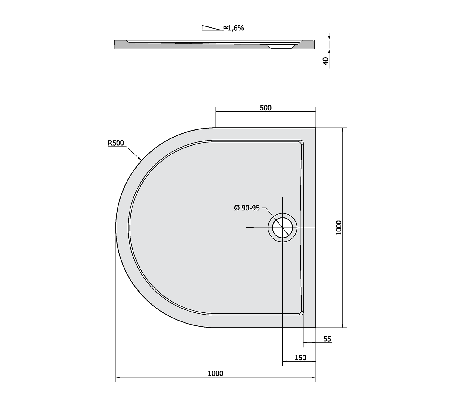 51111 POLYSAN KARIA öntöttmárvány zuhanytálca, 100x90x3cm