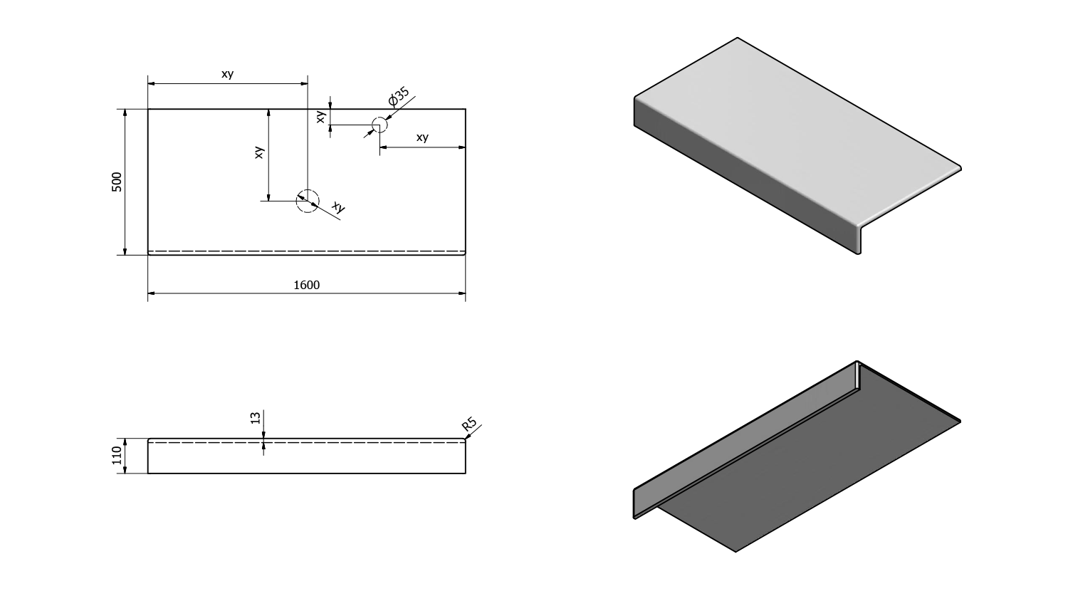 • Can be supplied with tap and waste holes according to drawing (can also be drilled at the installation site)