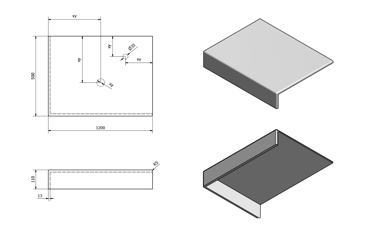 • Can be supplied with tap and waste holes according to drawing (can also be drilled at the installation site)
