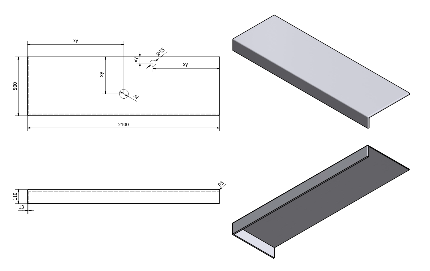 • Production of non-standard dimensions possible (max. 250x60 cm, perimeter collar 5-11 cm)