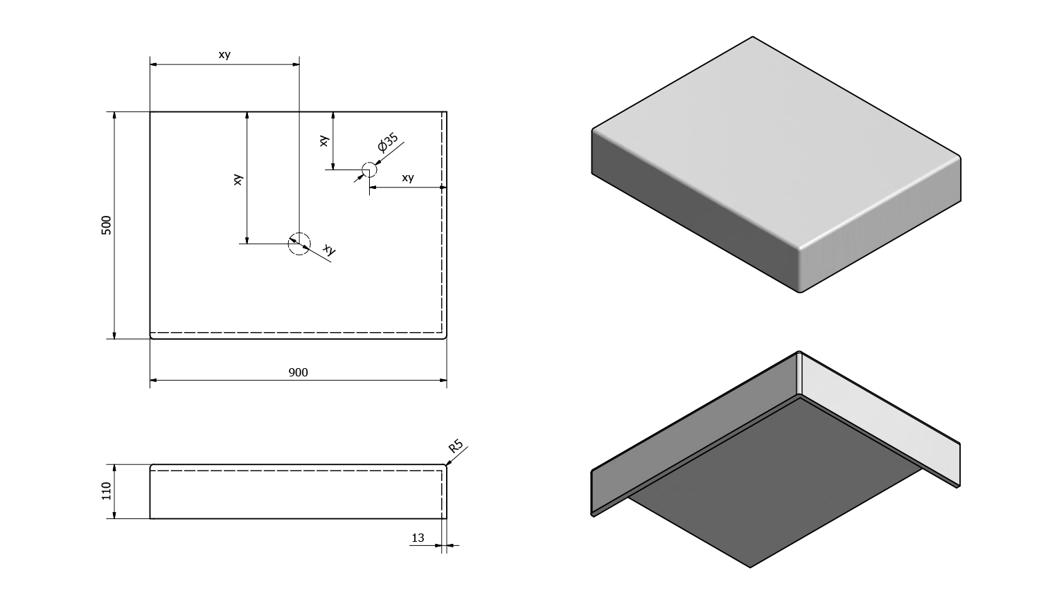 • Can be supplied with tap and waste holes according to drawing (can also be drilled at the installation site)