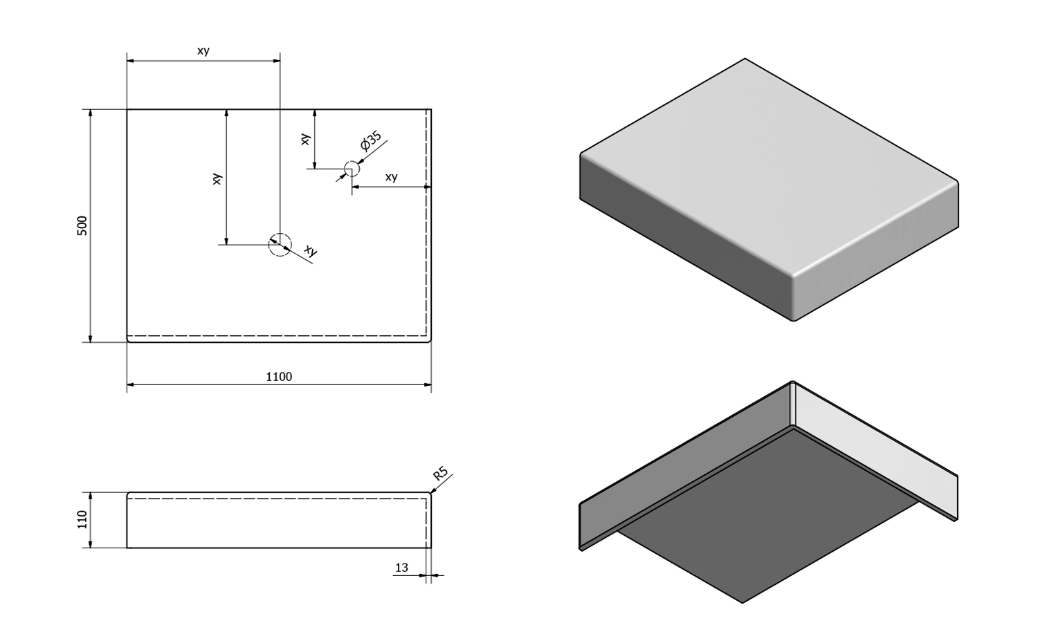 • Can be supplied with tap and waste holes according to drawing (can also be drilled at the installation site)
