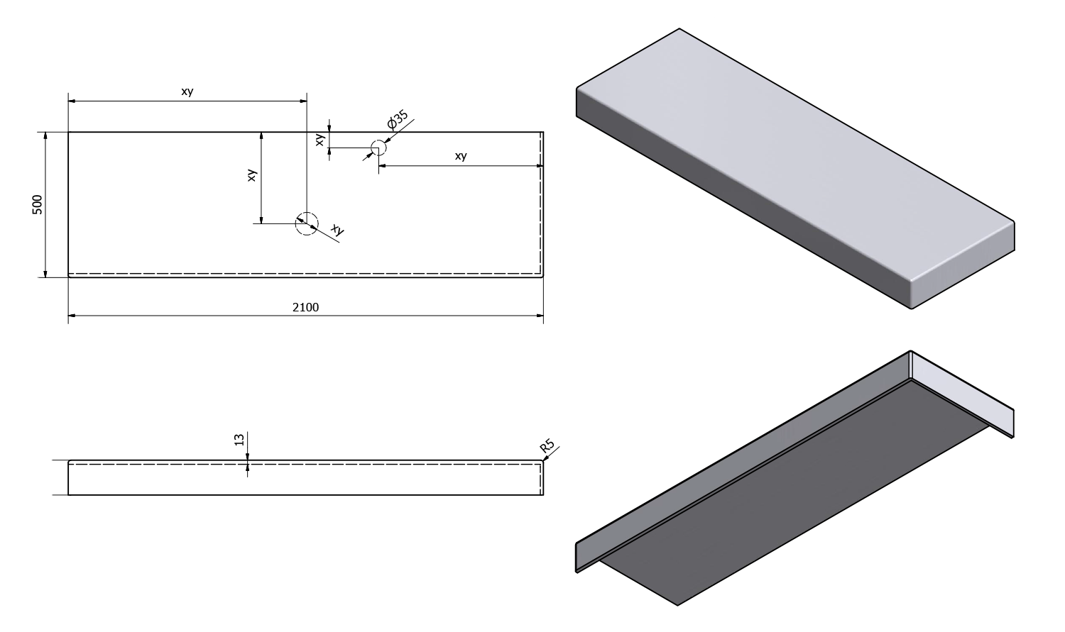 • Production of non-standard dimensions possible (max. 250x60 cm, perimeter collar 5-11 cm)