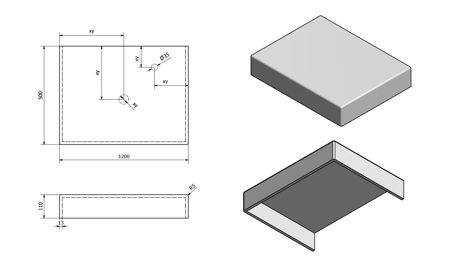 • Can be supplied with tap and waste holes according to drawing (can also be drilled at the installation site)