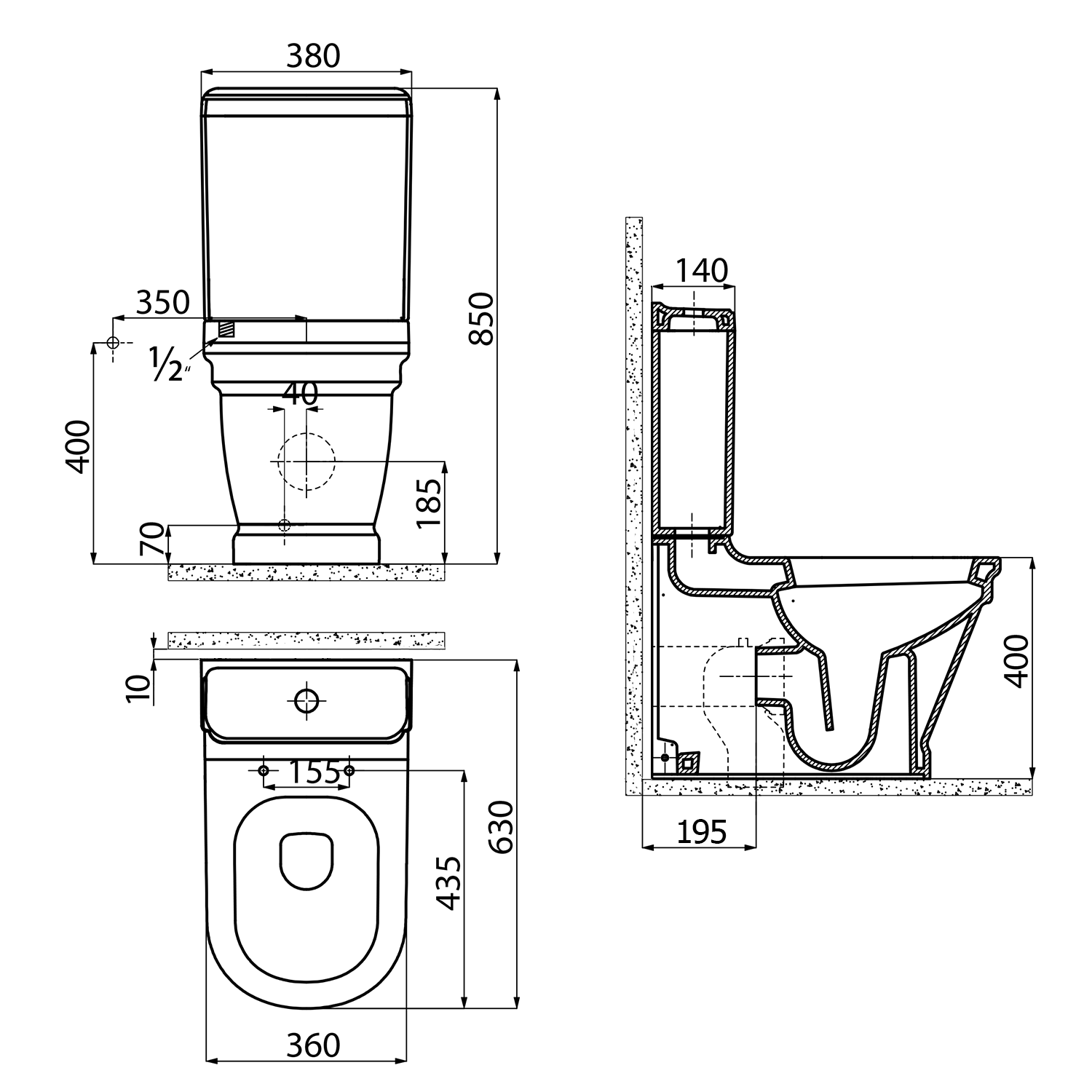 ANTIK kombi WC, hátsó/alsó kifolyású, tartállyal, öblítőmechanikával, ülőke nélkül (WCSET08-ANTIK)