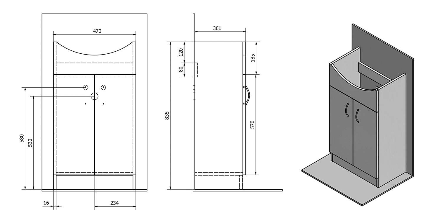 SIME550 AQUALINE SIMPLEX ECO 55 mosdótartó szekrény, mosdóval, 53x83,5x30,7cm, matt fehér