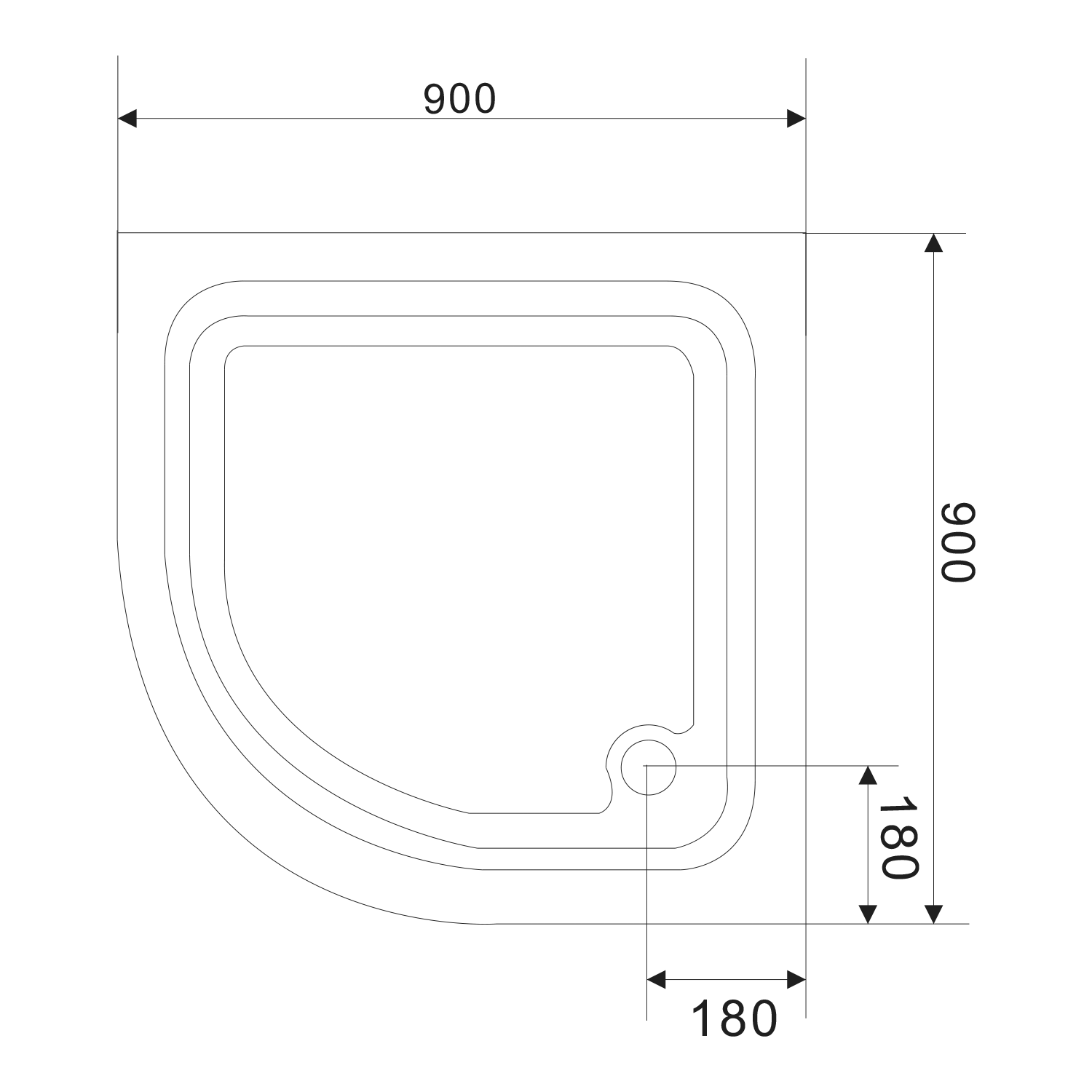 AQUALINE AMICA íves zuhanytálca, 90x90x15cm, R55 (C90 helyett) (BTTR90)