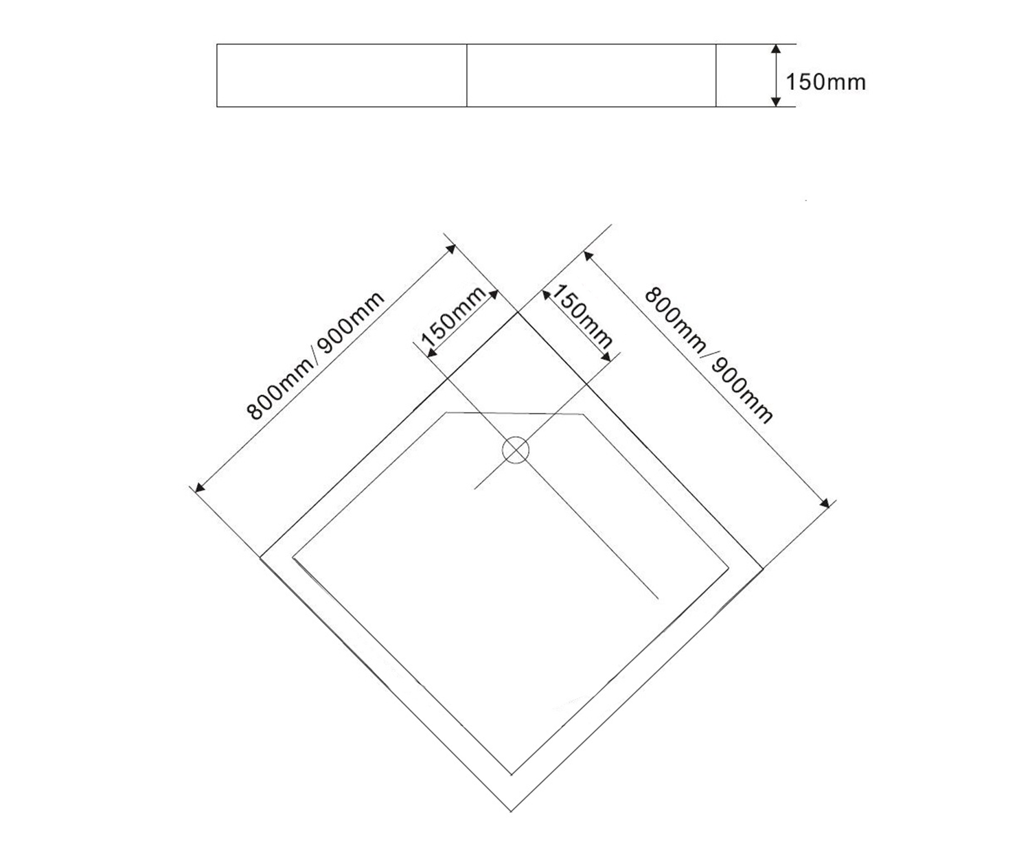 PQ009 AQUALINE TECMI öntöttmárvány zuhanytálca, 90x90x3cm