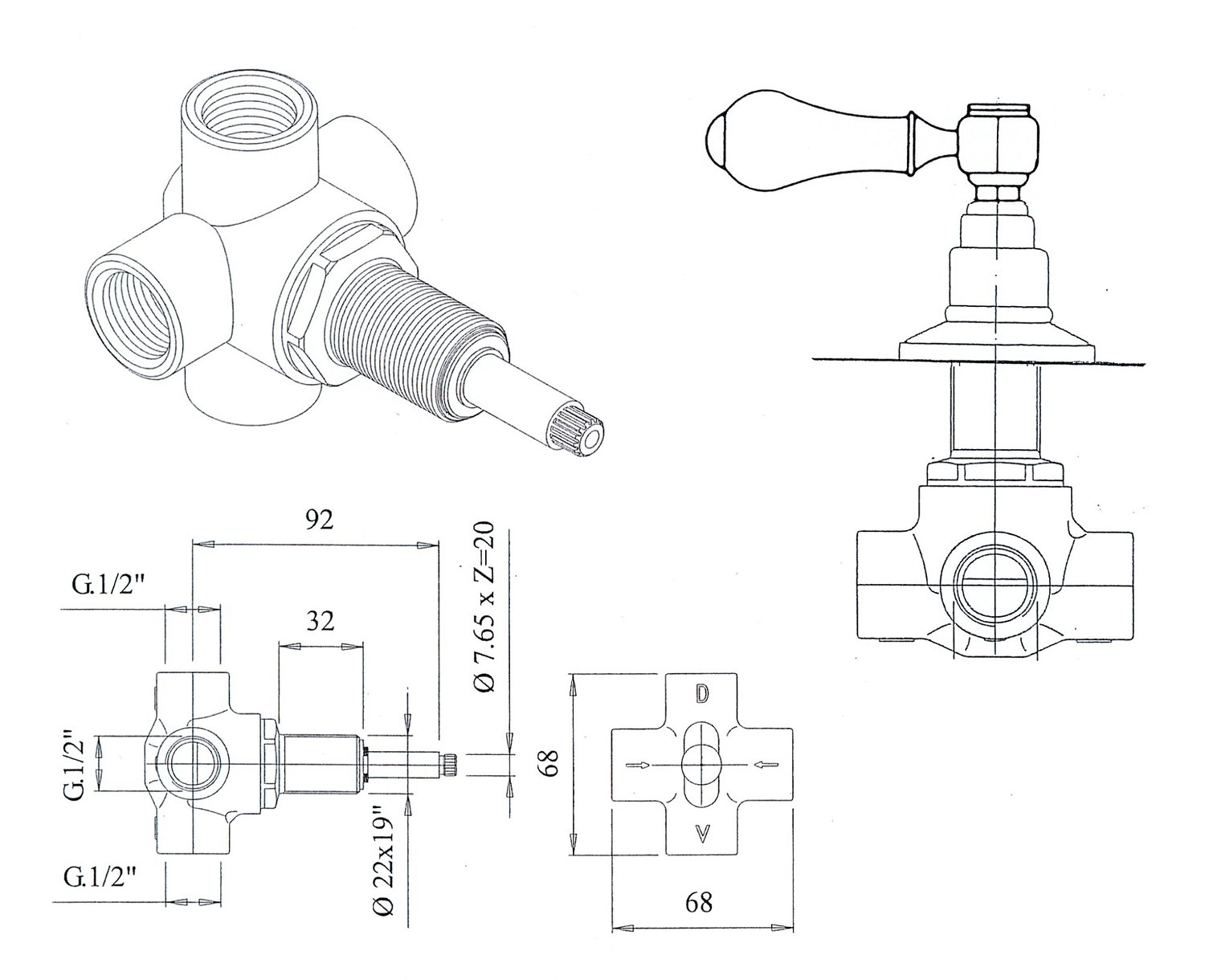 3056H REITANO ANTEA falsík alatti elzáró szelep, meleg, 1/2", bronz