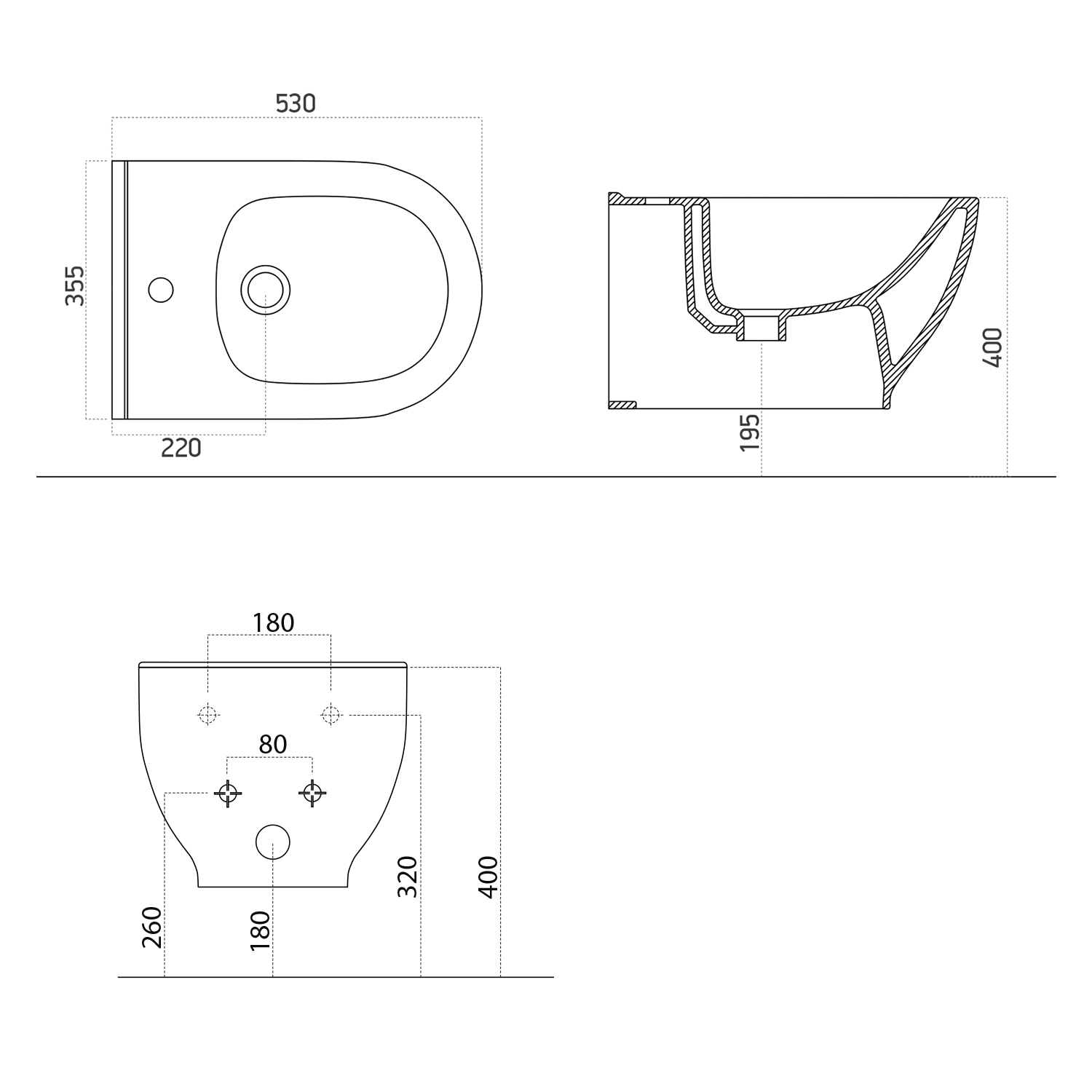 BRILLA fali bidé, 36,5x53cm (100624)