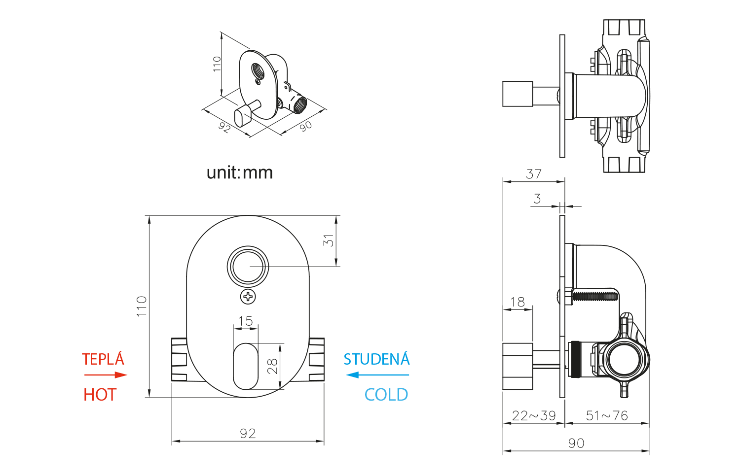 1209-03 falsík alatti bidécsaptelep hideg/meleg vizes bekötéshez, JS121-hez, króm (1db)