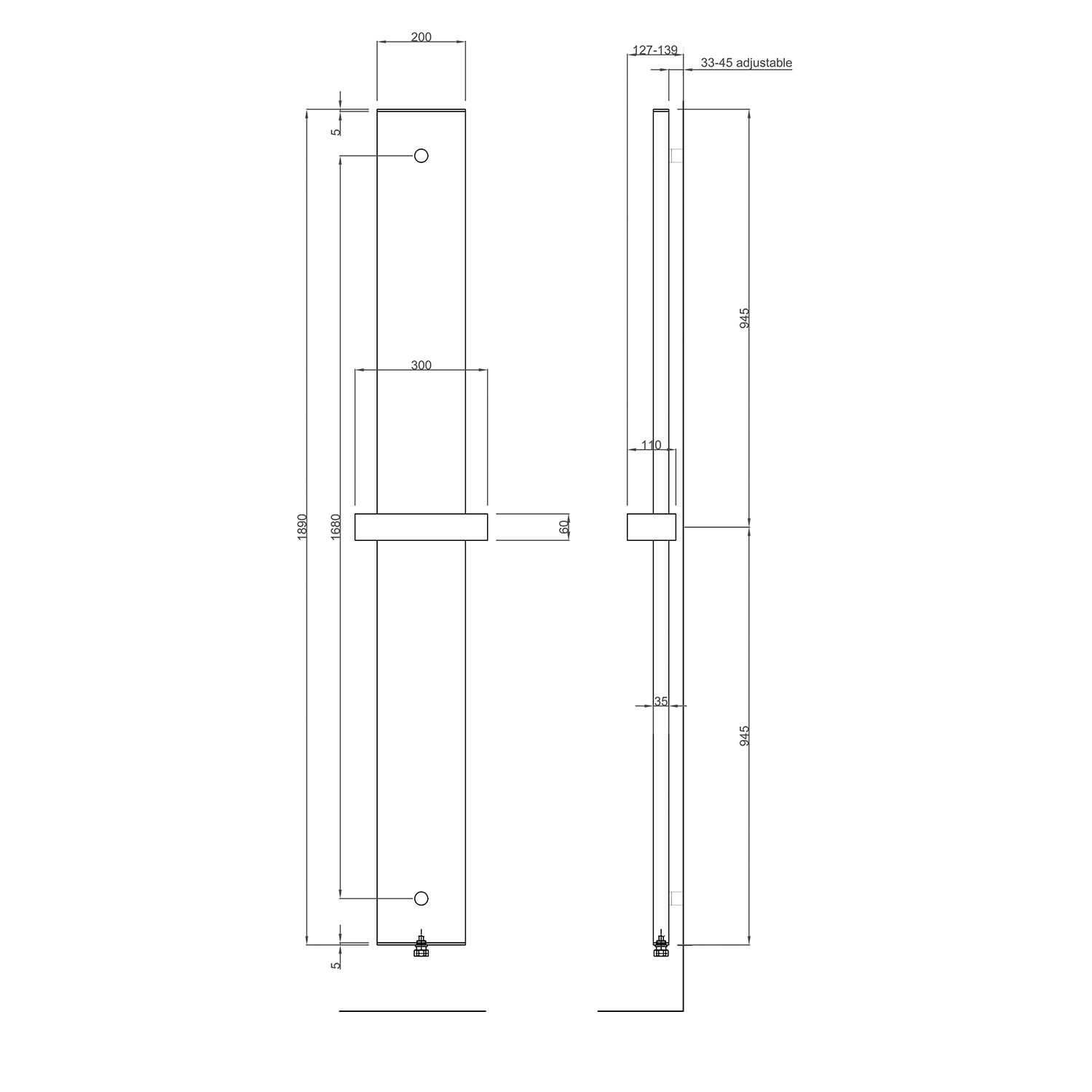 2301189030SN RIDEA OTHELLO MONO SLIM fürdőszobai radiátor, 300x1890mm, matt fekete