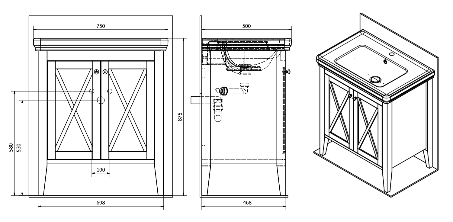 CR375 CROSS Mosdótartó szekrény, 70x81x47cm, bükk (1db)