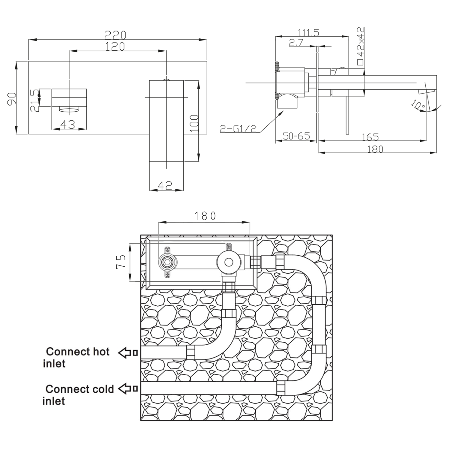 1102-08 LATUS falba építhető mosdócsaptelep, króm