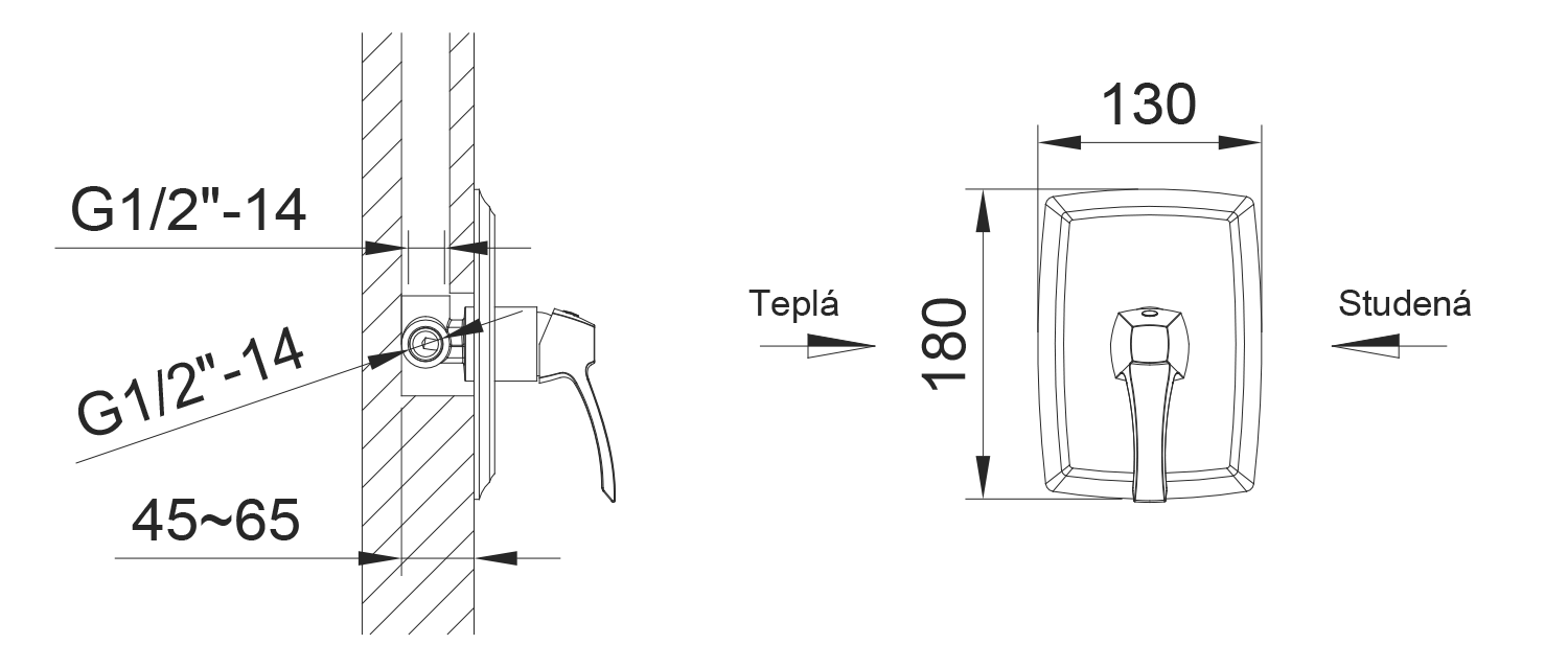 DA042 DREAMART falsík alatti zuhanycsaptelep, 2-irányú váltóval, króm